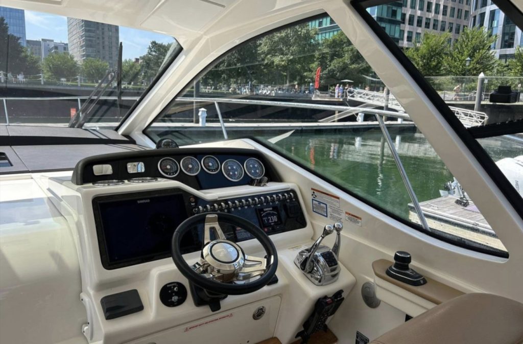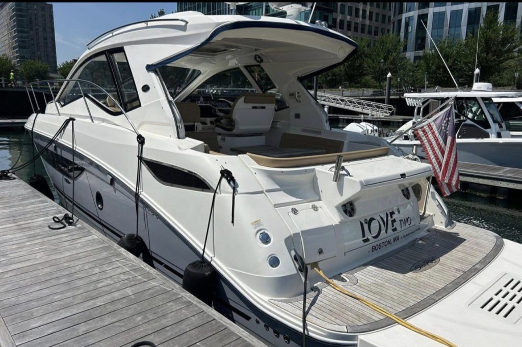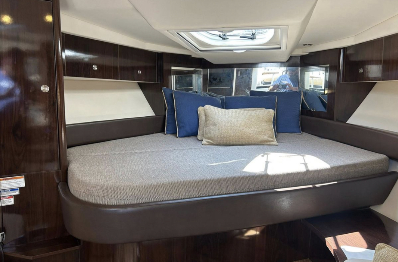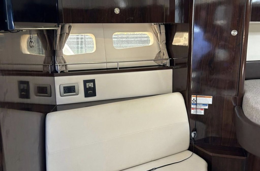 Notable features include generator, joystick and bow thruster control, cockpit air conditioning, power sunroof, teak cockpit and so much more! If you are on the hunt for a late model, sleek express cruiser, be sure to get aboard “Love!”