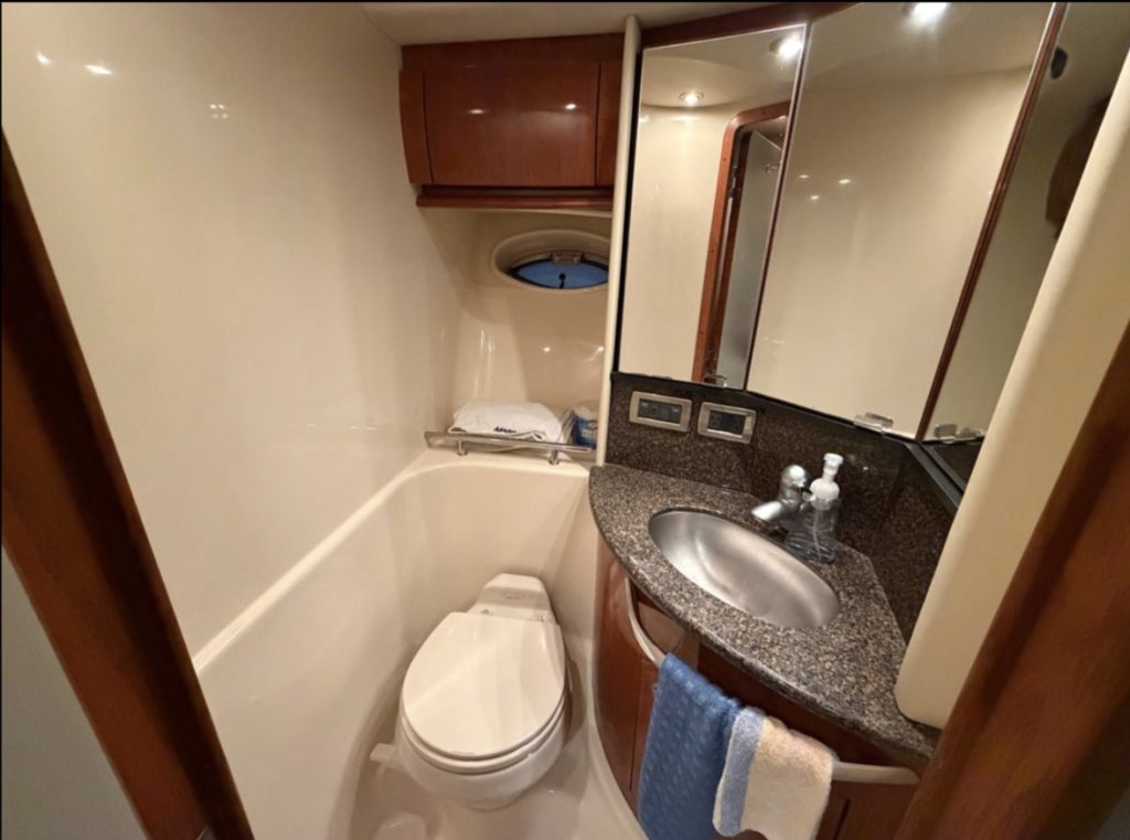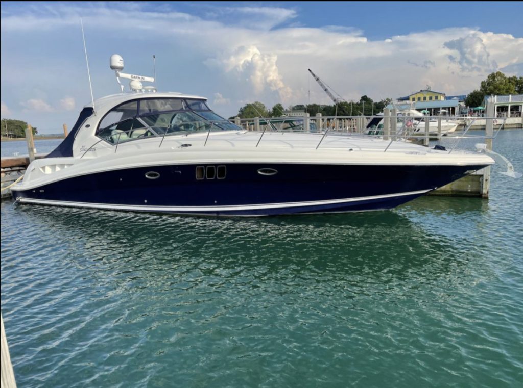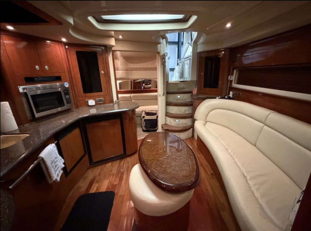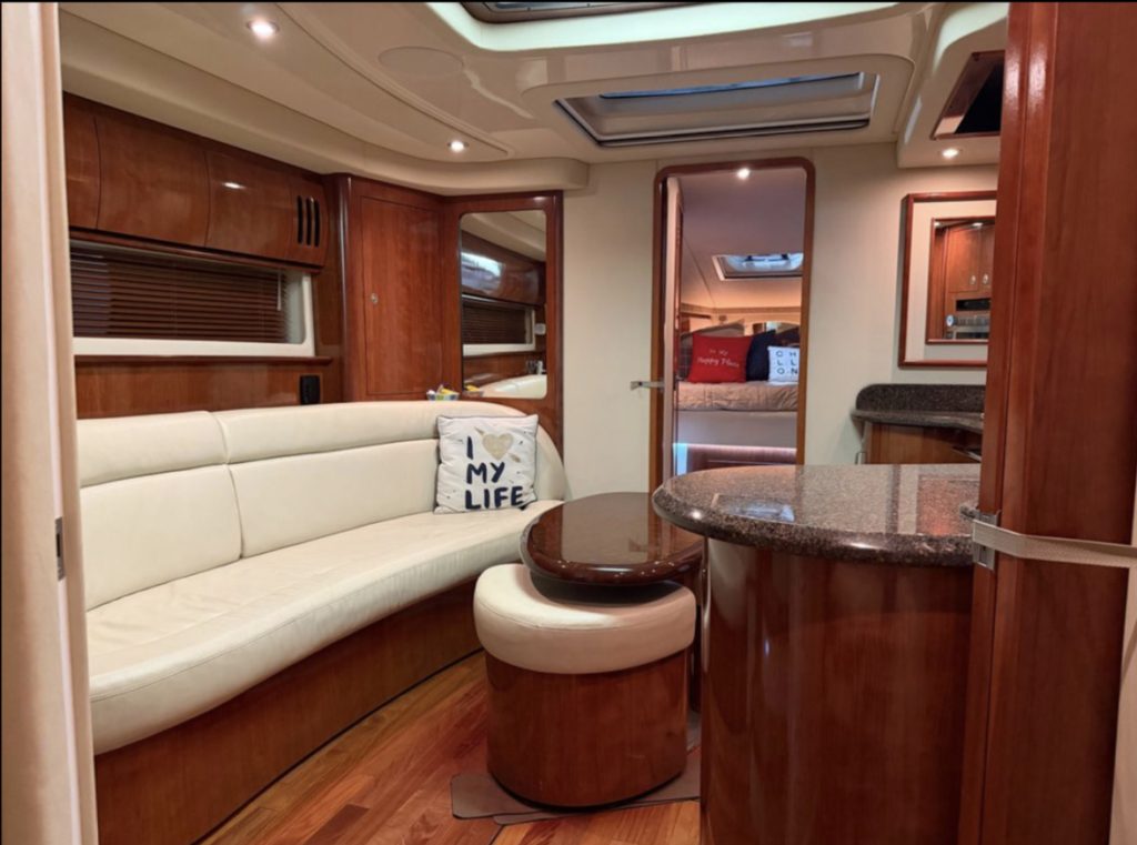 The Sea Ray 44 Sundancer has two cabin and can accommodate up to 4 guests and with the dinette, it is possible to sleep 6 people.