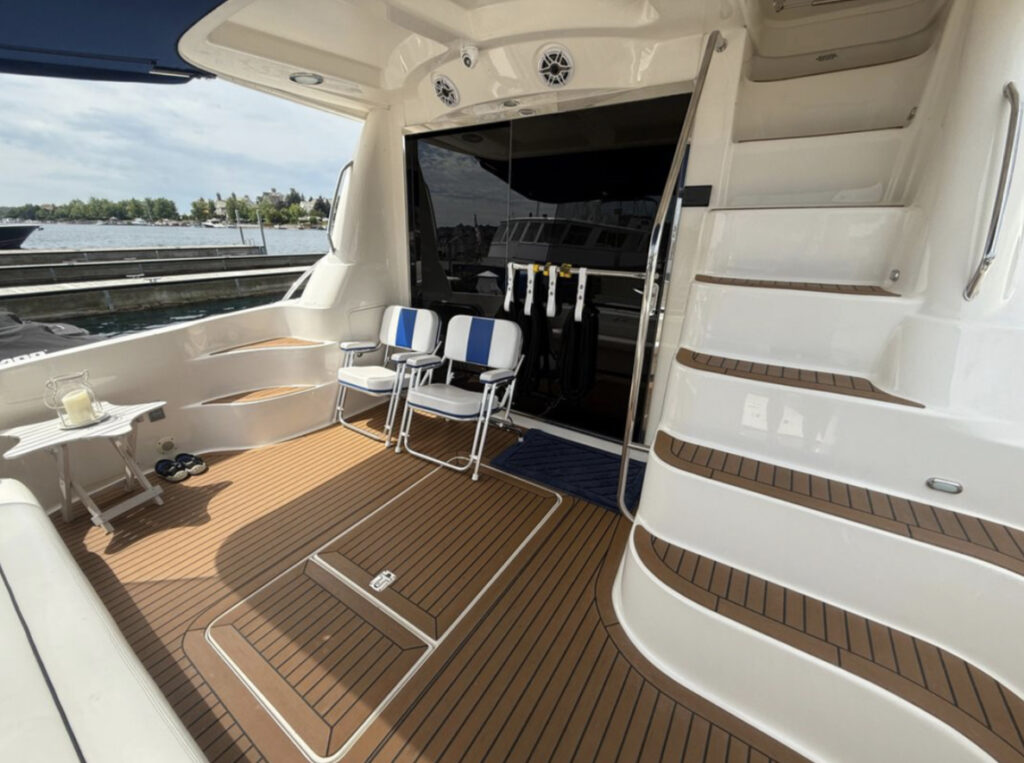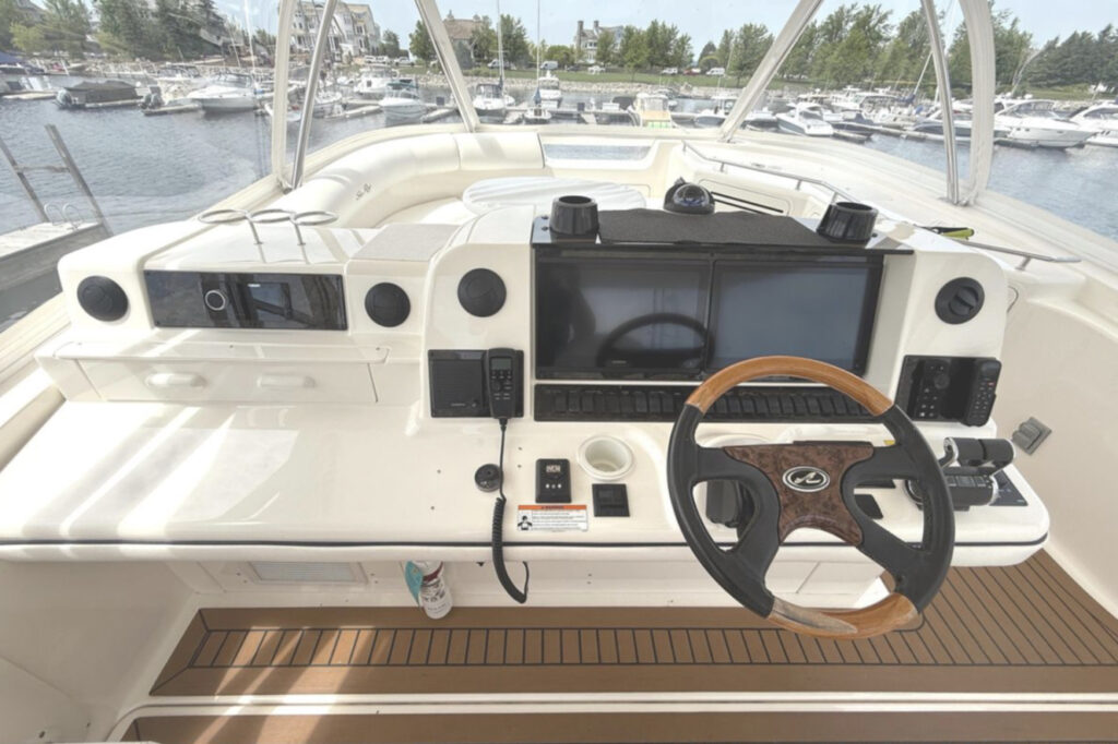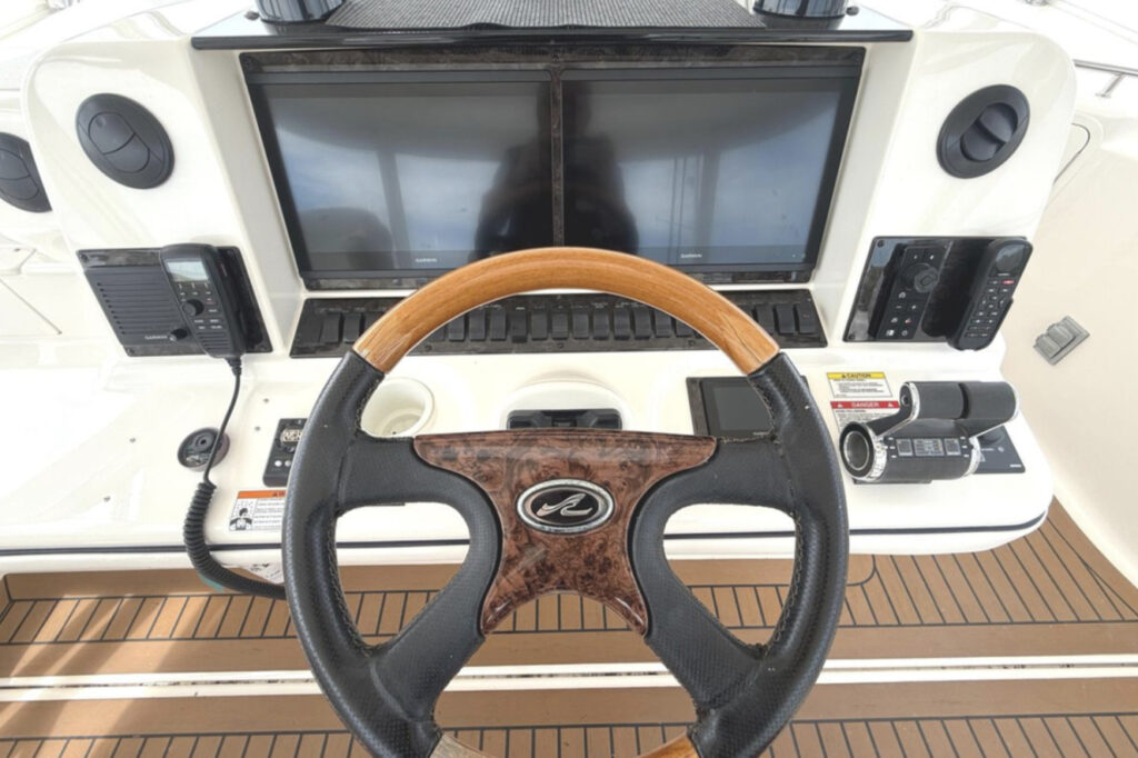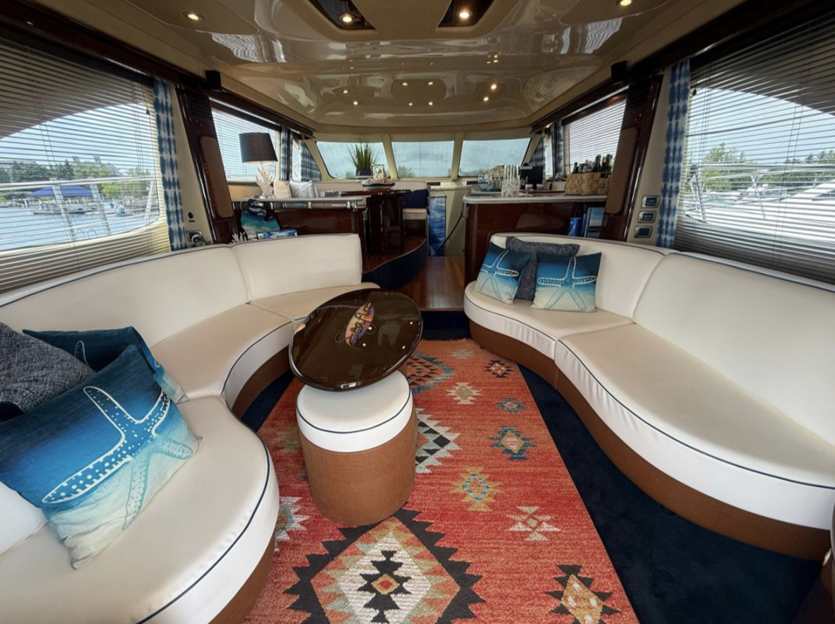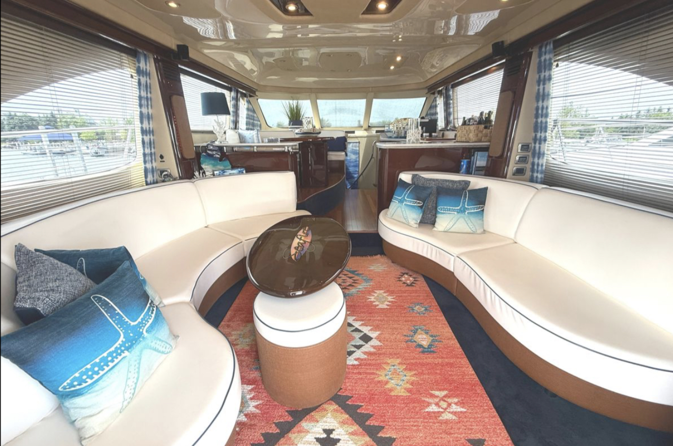 More powerful and adventurous than any other yacht in its class, the 58 Sedan Bridge is ready to take command of the water. Its bold, dynamic styling includes a fiberglass hardtop as well as the very latest in marine electronics.