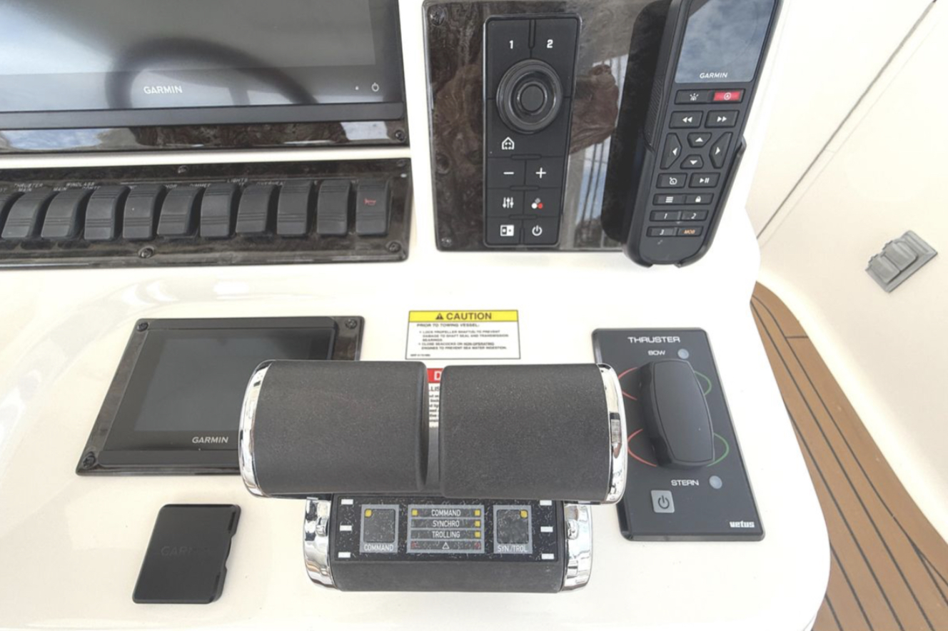 Everything about the 580 seems big, from the expansive salon with facing leather sofas and cherry wood cabinets to the spacious flybridge with standard fiberglass hardtop and seating for a small crowd.