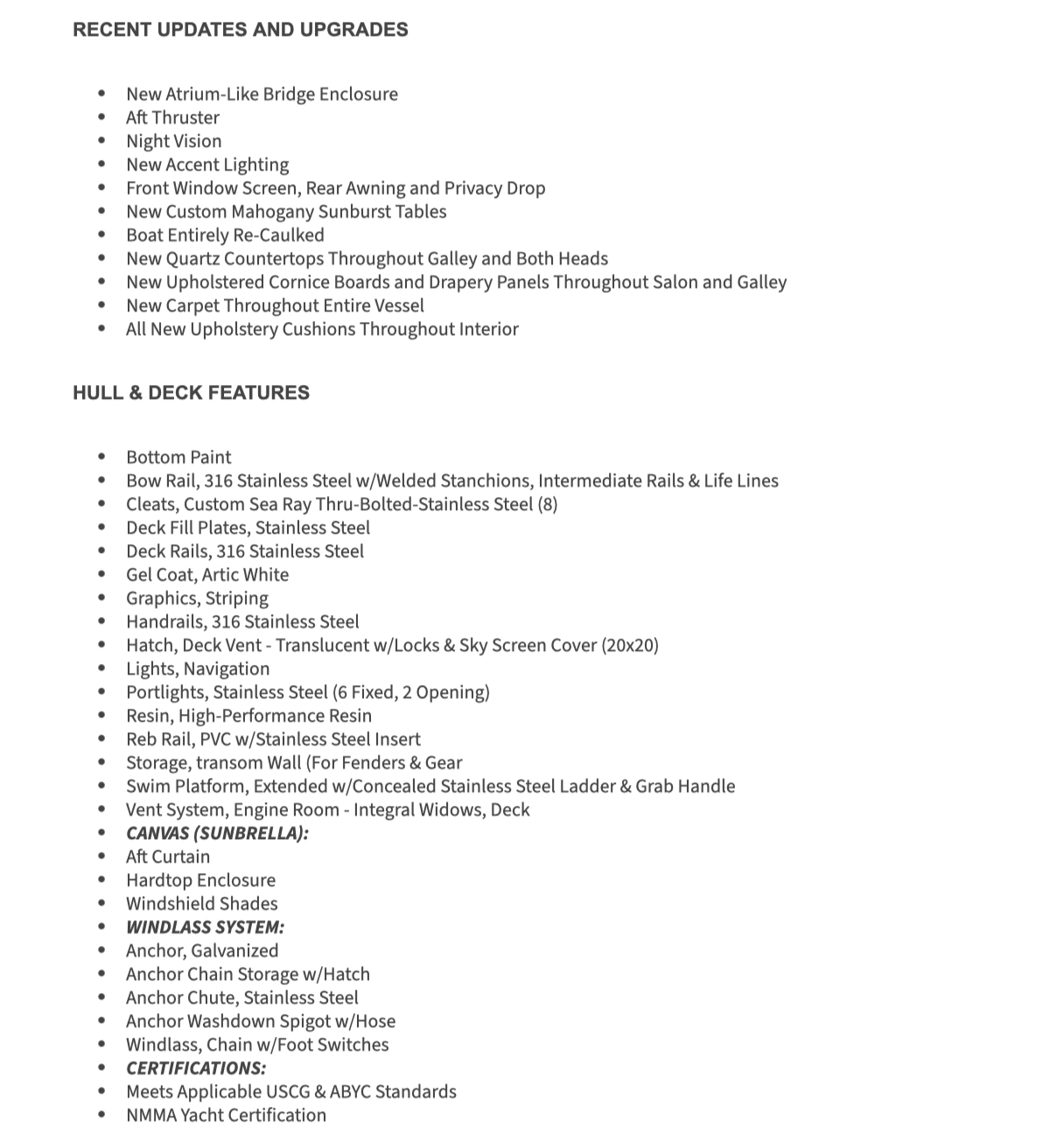 N.B. Voir l’onglet PIECES JOINTES pour tous les détais de ce SEA RAY 58 Sedan Bridge
