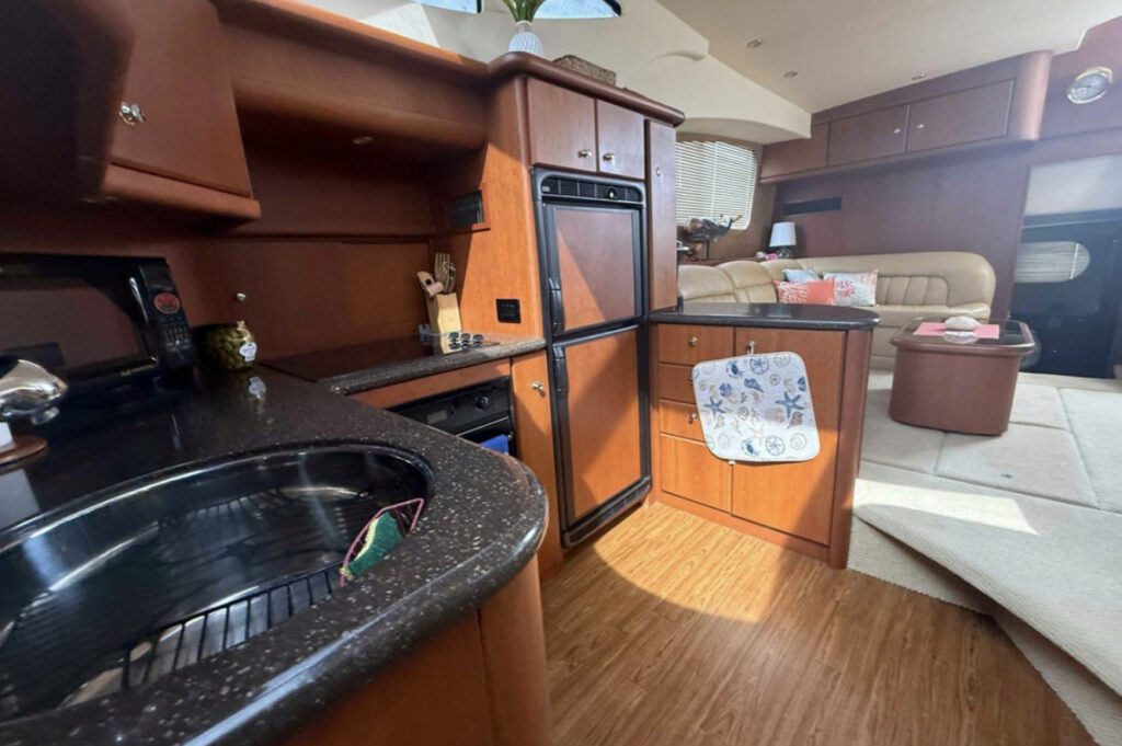 The Silverton 39 Motor Yacht is a culmination of extensive research and modern technology. Below, Silverton has increased the usage of rich solid cherry woods, created solid cherry raised panel doors, and extended the use of genuine Corian countertops.