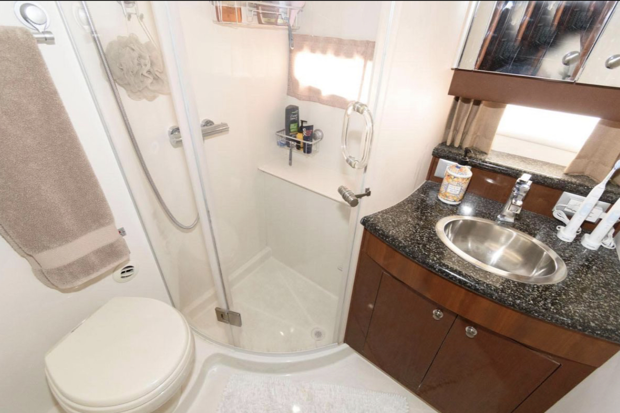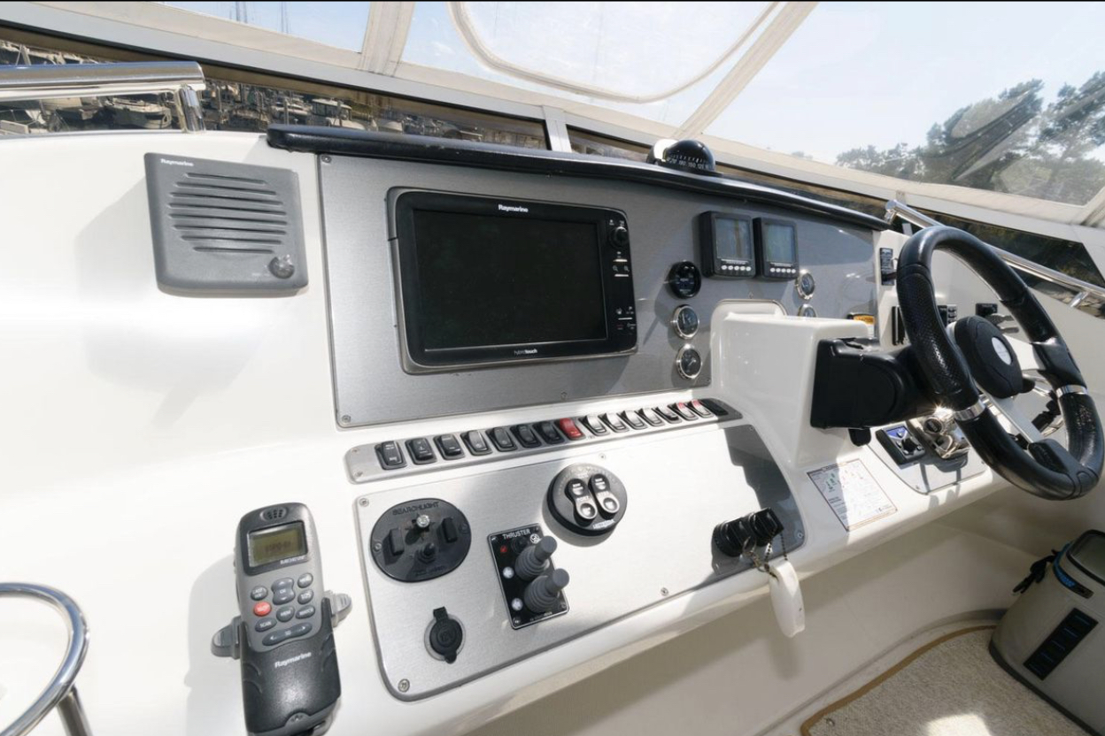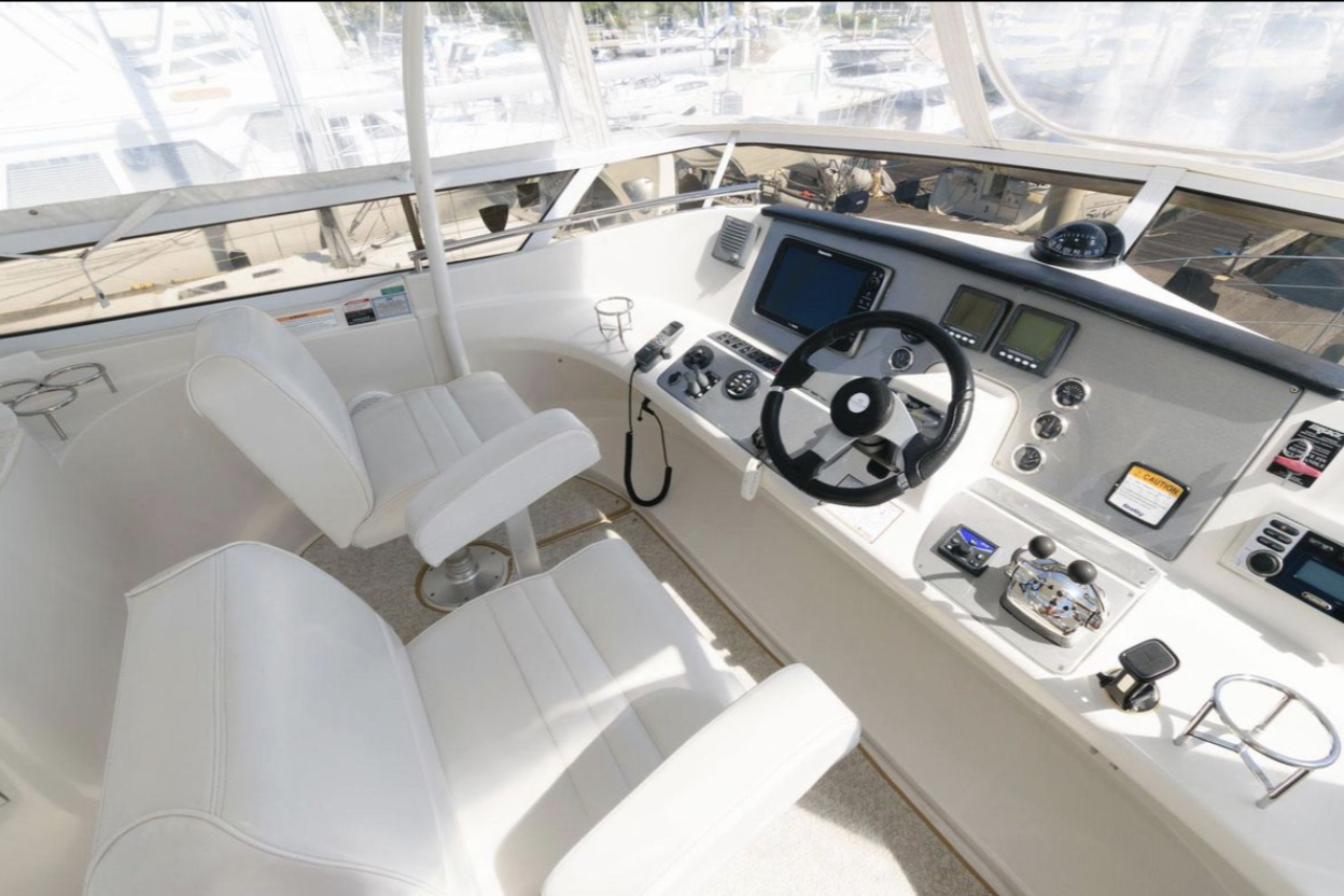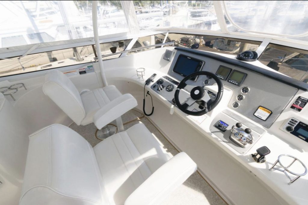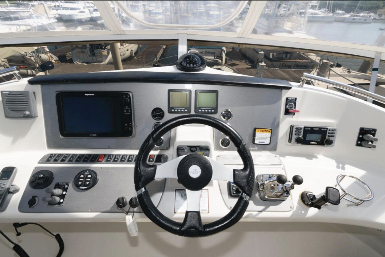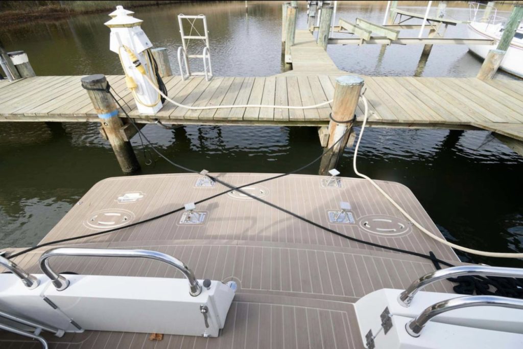 This low-hour vessel has all the amenities that make her comfortable and easy to handle including, generator, bow and stern thrusters, Yacht Controller, a hardtop, and a hydraulic platform for the dinghy just to name a few.