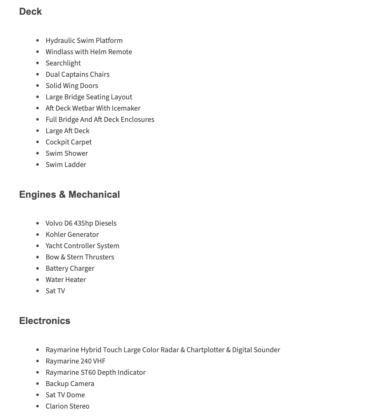 N.B. Voir l’onglet PIECES JOINTES pour les détails de ce Carver 43 M/Y
