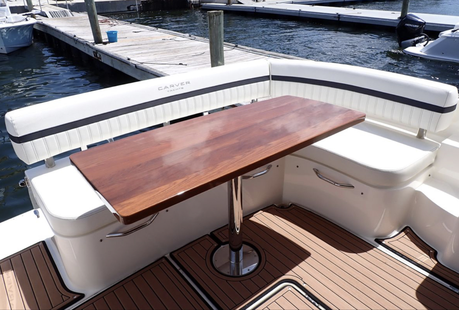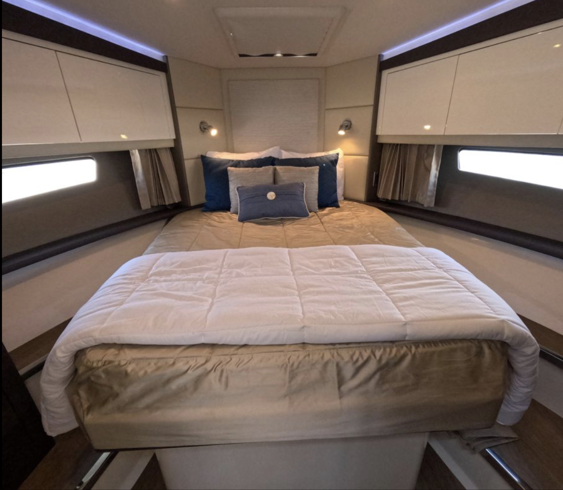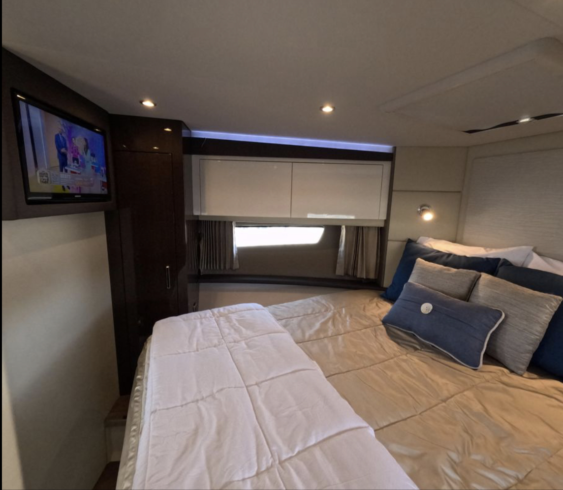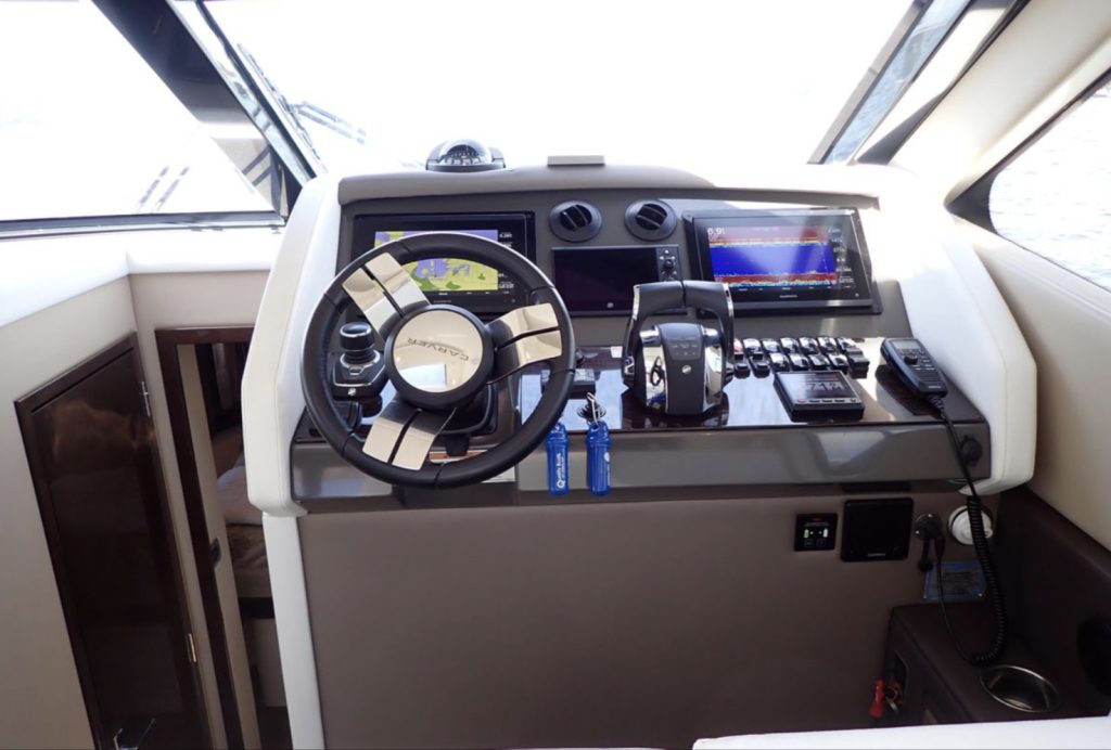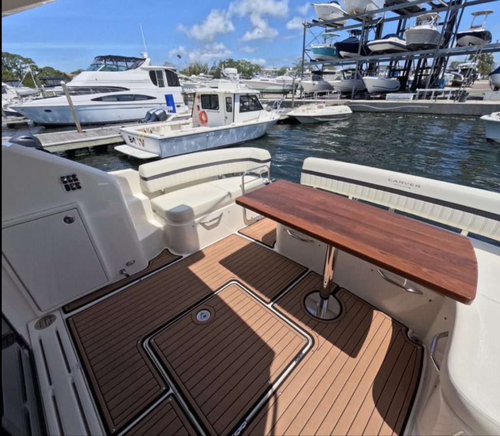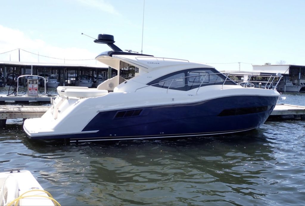 The Carver C37 is an extraordinary marriage of luxurious recreational and living space in a truly gorgeous, fast and seaworthy hull. This particular C37 is the best and rarest of them all. While the majority of C37’s are stern drive, gasoline powered vessels this fully optioned Carver has the very rare and expensive upgrade to inboard Mercruiser 335 HP diesel inboard engines.
