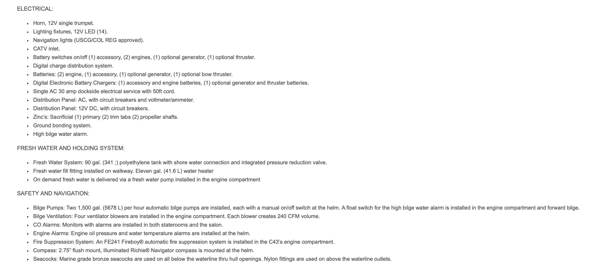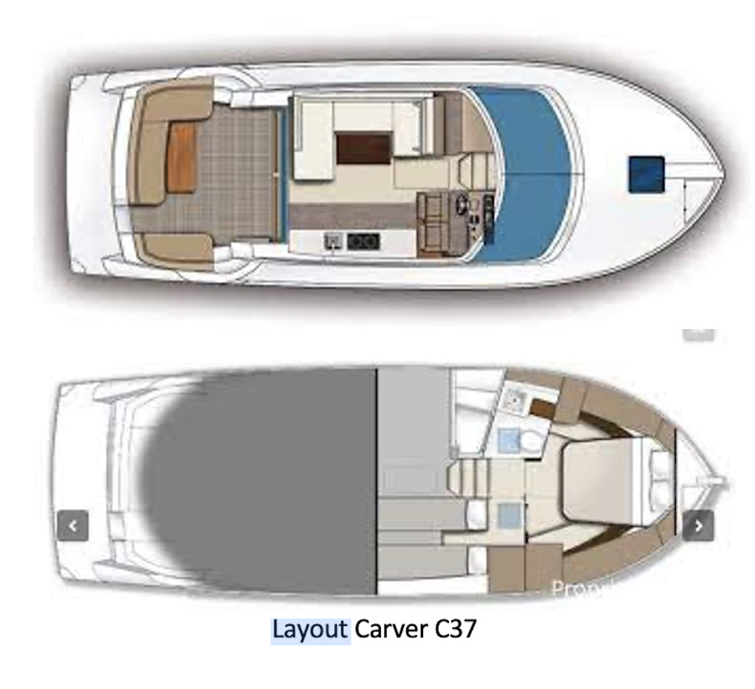 Scroll down below to find the description and detailed specifications and components that make the Carver C37 the very special yacht she is as described by the Carver factory: