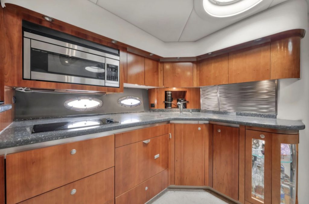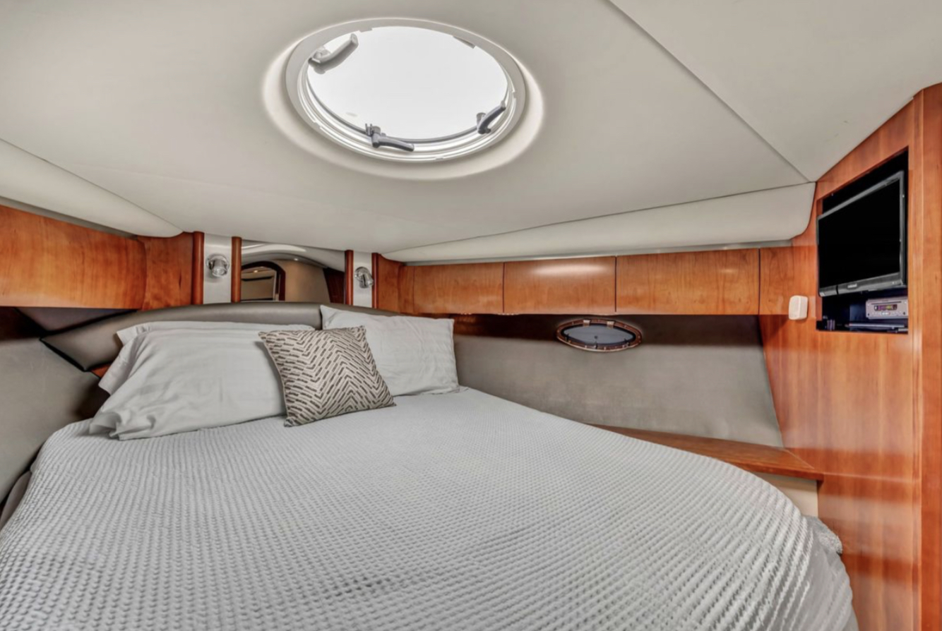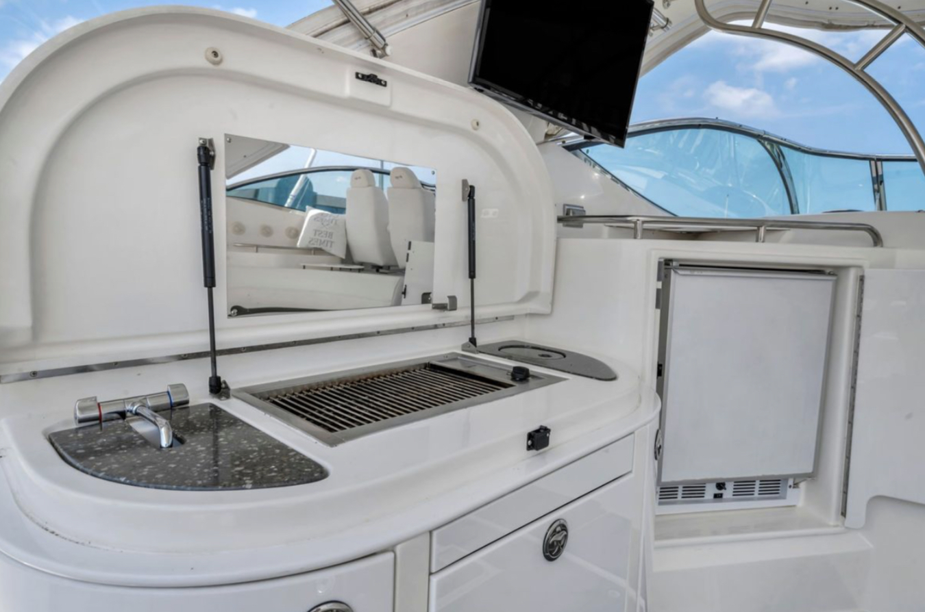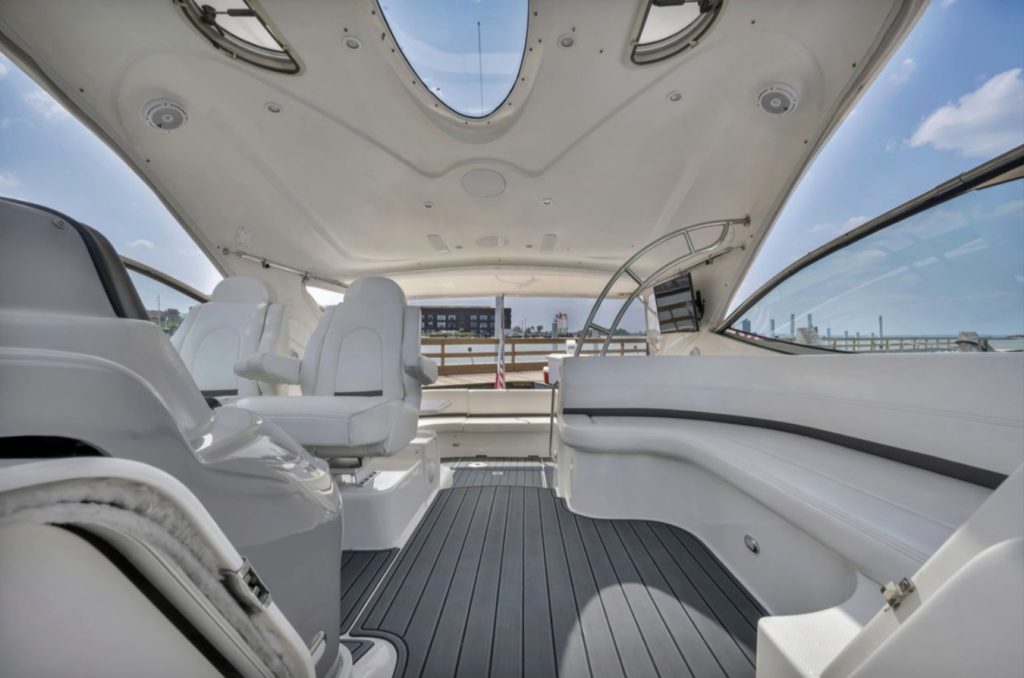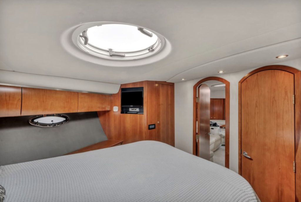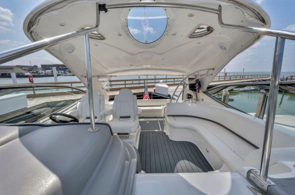 This refined 52 foot express cruiser combines exceptional performance with elegant, nautical comfort. Built with a semi displacement hull and top-tier systems, she features cathedral-style cherry veneer interiors, a full galley, lavish master stateroom, dynamic entertainment setups, and cockpit lounging complete with hydraulic swim platform and integrated grill/wet bar