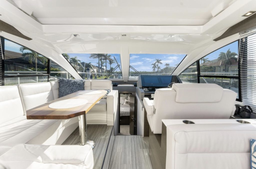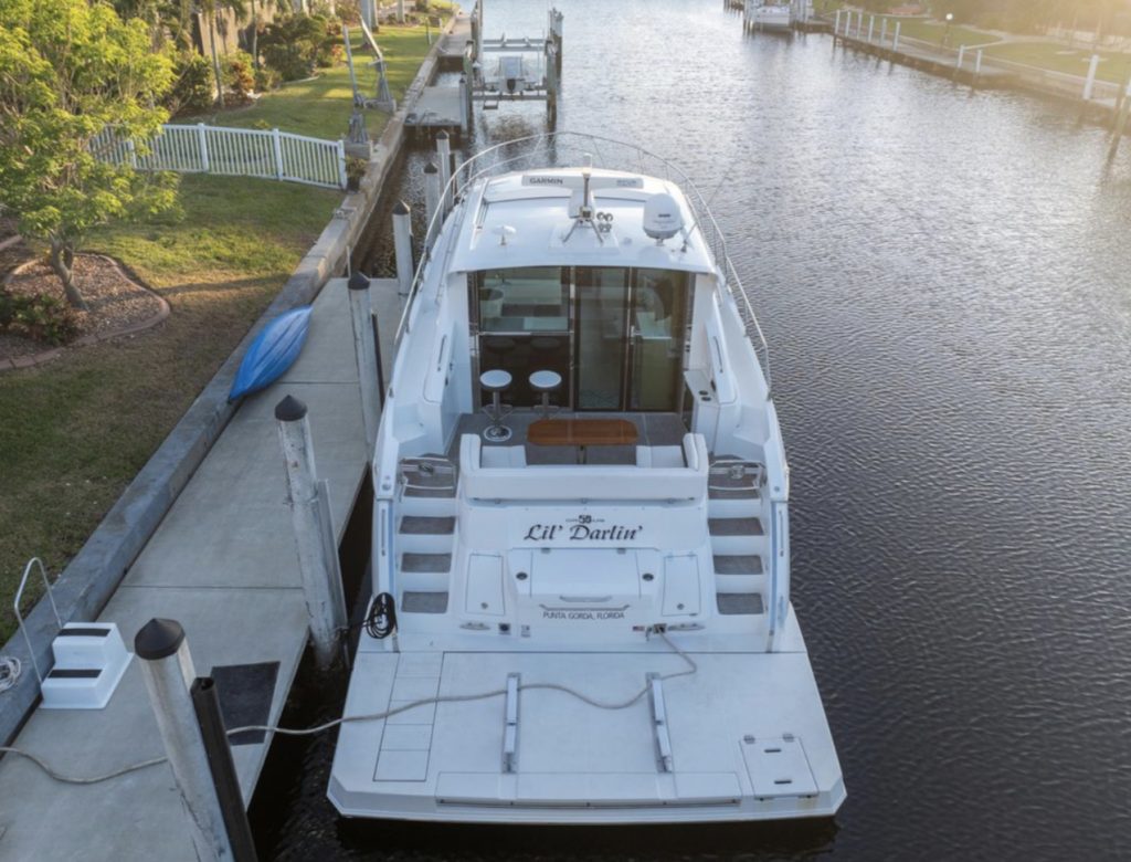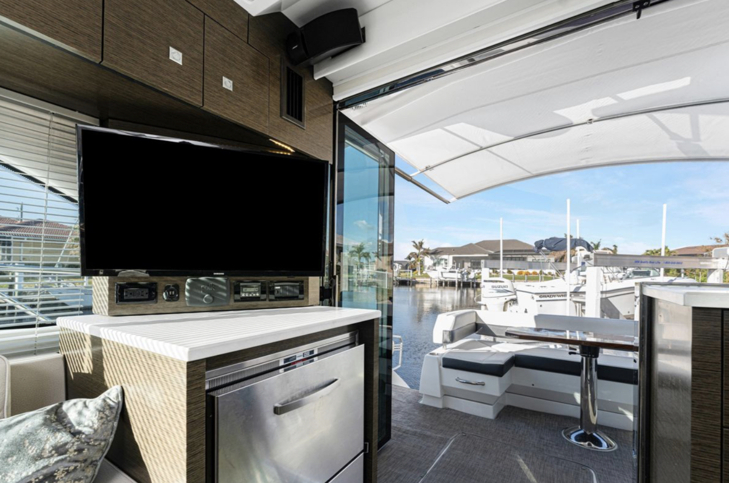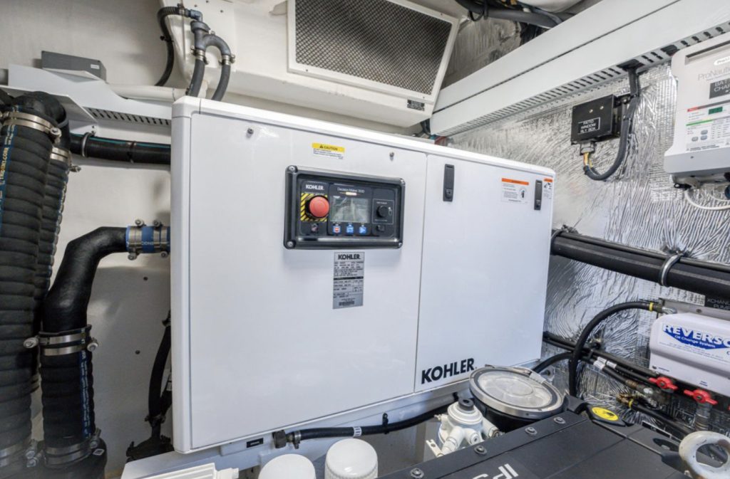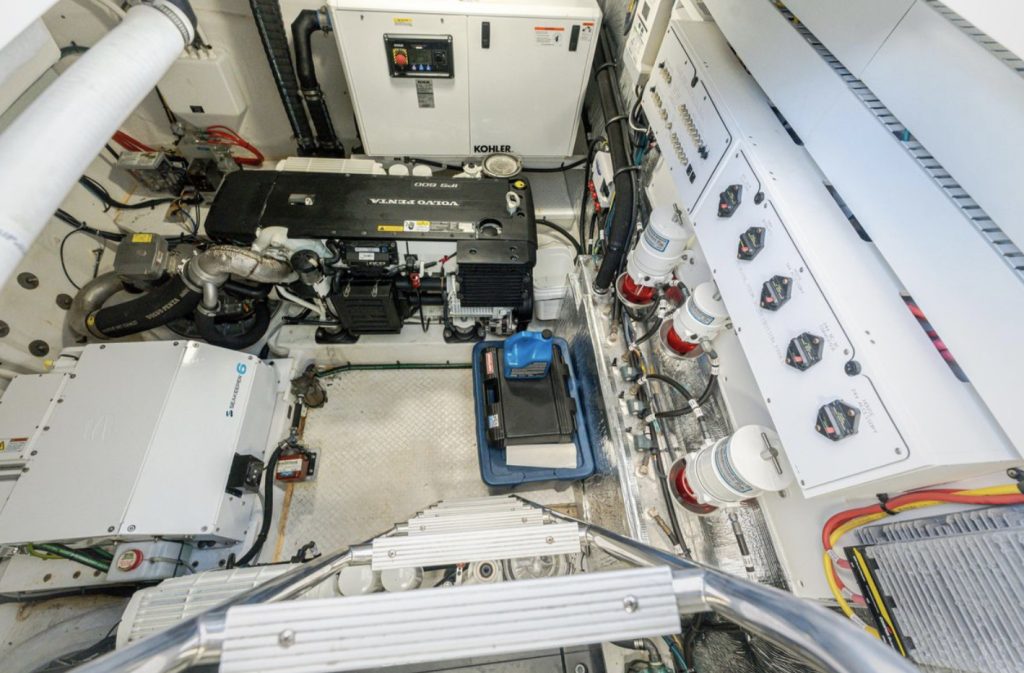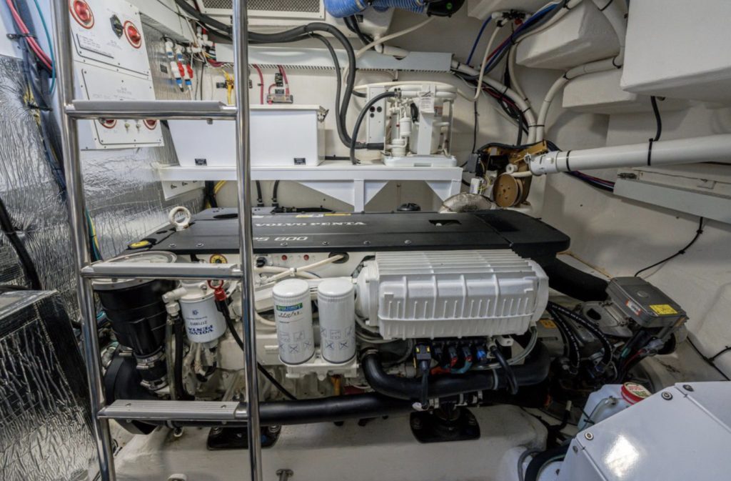 This Cruisers Cantius 50’ is like brand new, it spends 6 months inside an air-conditioned warehouse on the hard, it was a freshwater boat until the current owner bought it, loaded with all the options, the 450 hp 600 series Volvos pod drives with only 417 hrs work flawlessly with the joystick control that affords you to single-handedly run this yacht, the 15 kw Kohler generator easily runs everything on the ship .