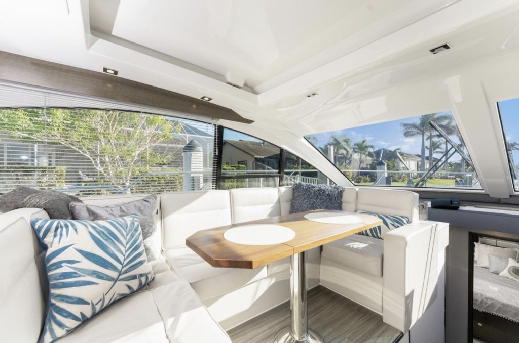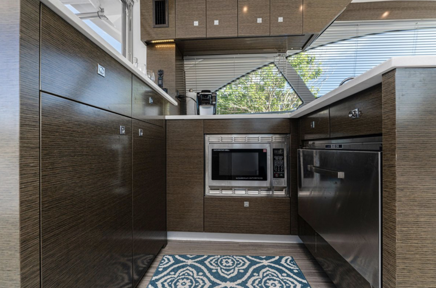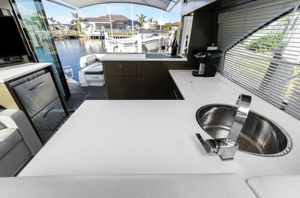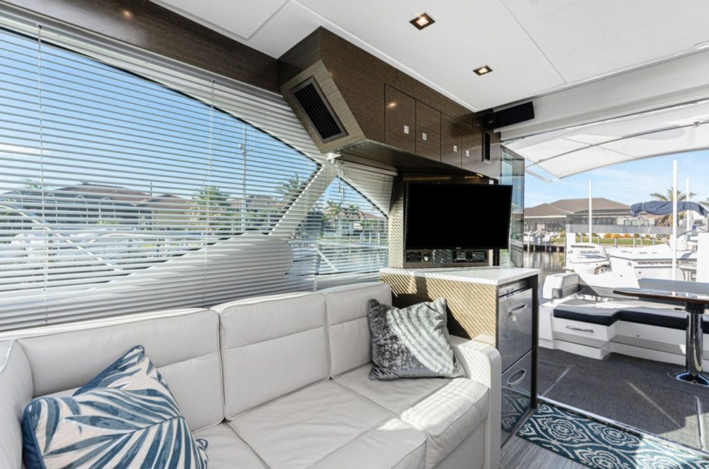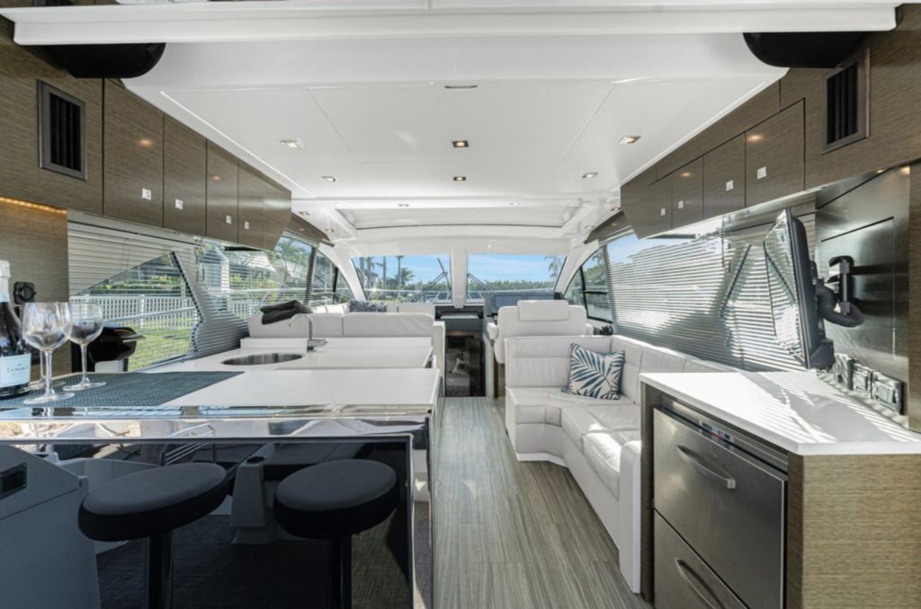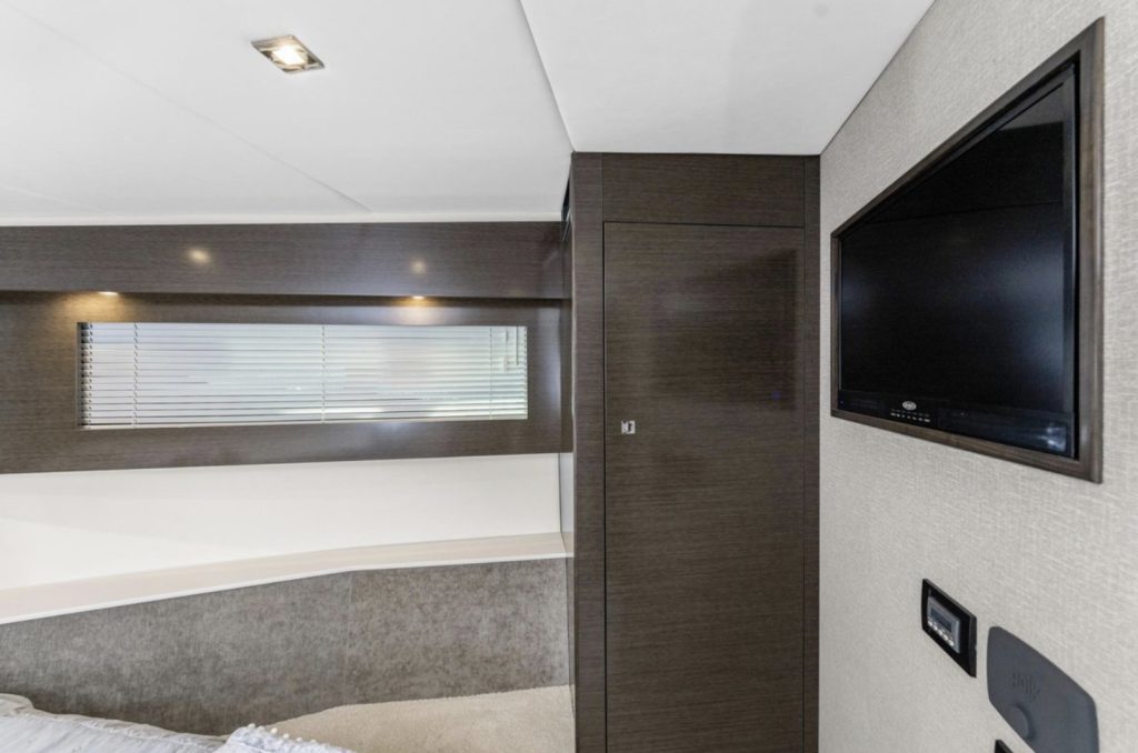 This Cruisers Cantius 50’ is like brand new, it spends 6 months inside an air-conditioned warehouse on the hard, it was a freshwater boat until the current owner bought it, loaded with all the options, the 450 hp 600 series Volvos pod drives with only 417 hrs work flawlessly with the joystick control that affords you to single-handedly run this yacht, the 15 kw Kohler generator easily runs everything on the ship .