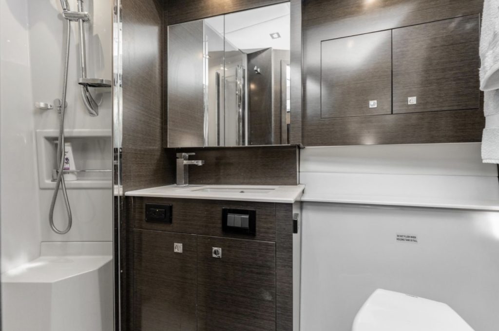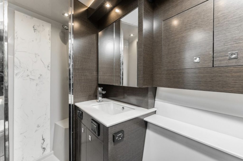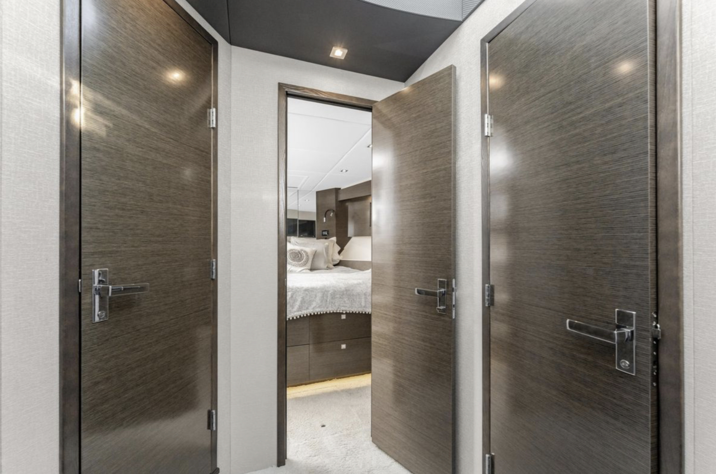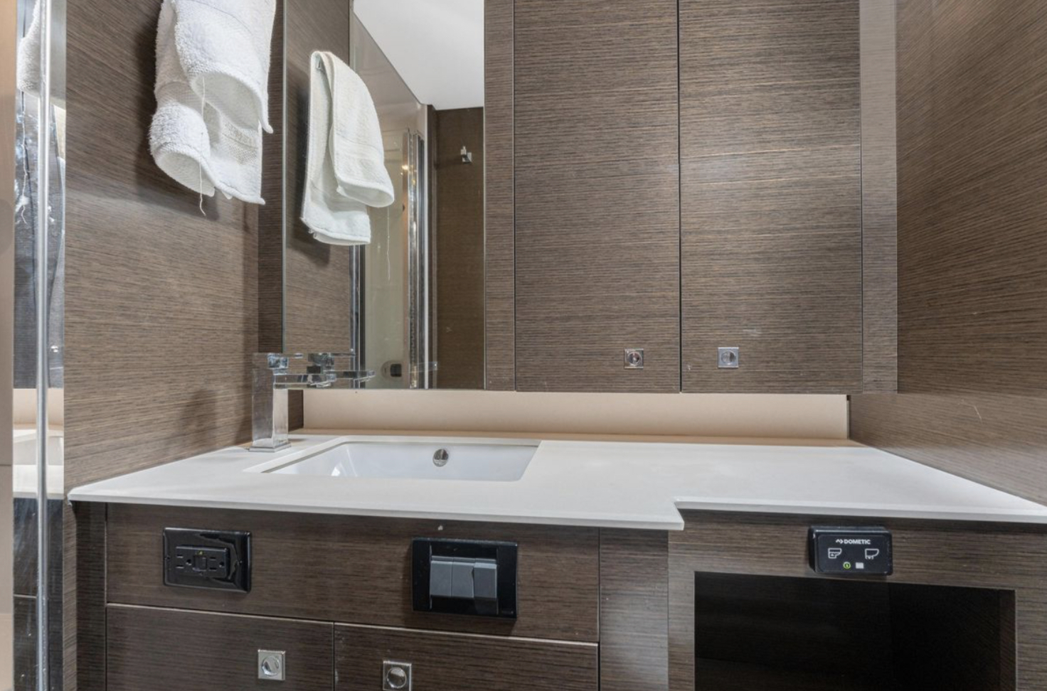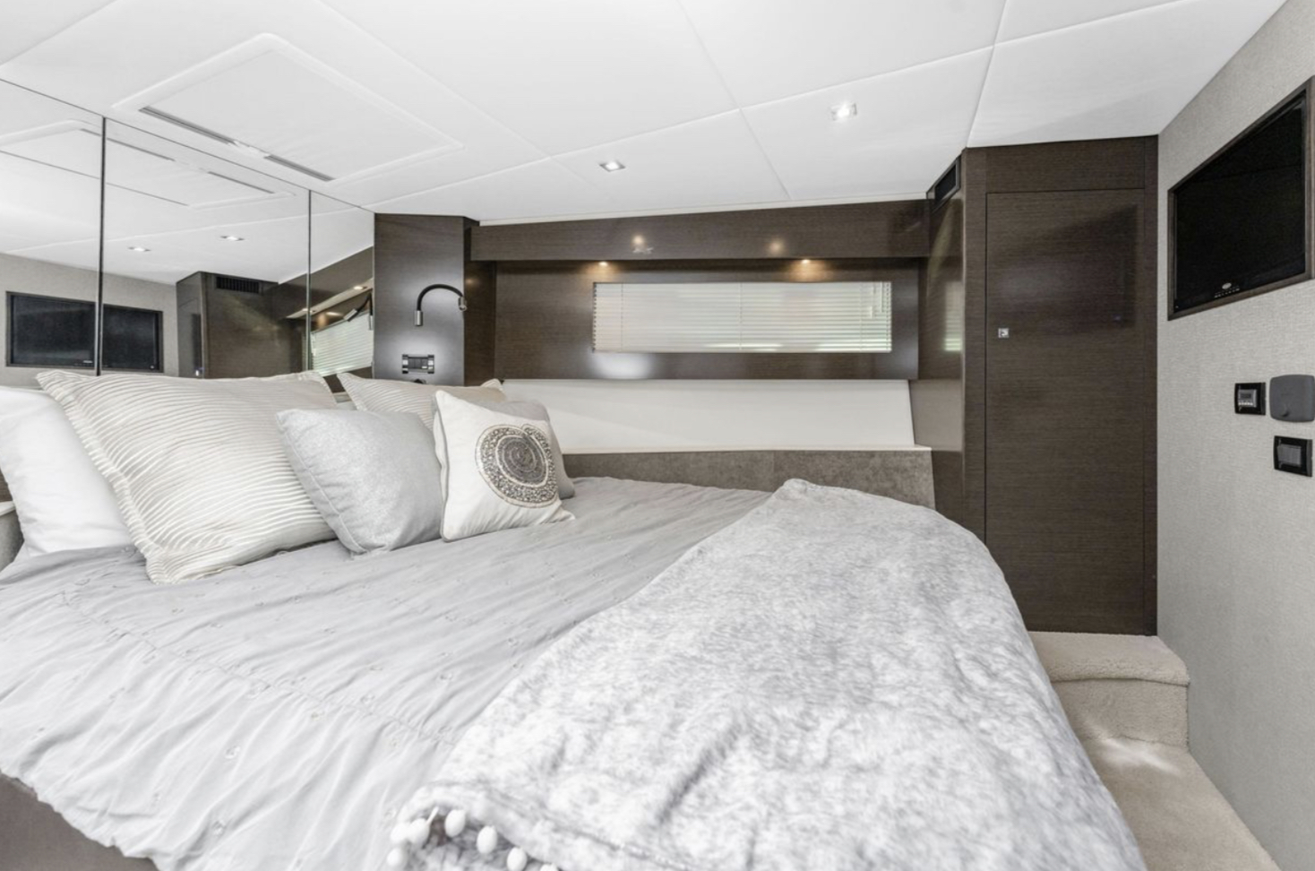 This Cruisers Cantius 50’ is like brand new, it spends 6 months inside an air-conditioned warehouse on the hard, it was a freshwater boat until the current owner bought it, loaded with all the options, the 450 hp 600 series Volvos pod drives with only 417 hrs work flawlessly with the joystick control that affords you to single-handedly run this yacht, the 15 kw Kohler generator easily runs everything on the ship .