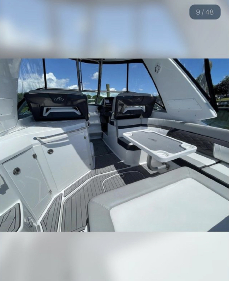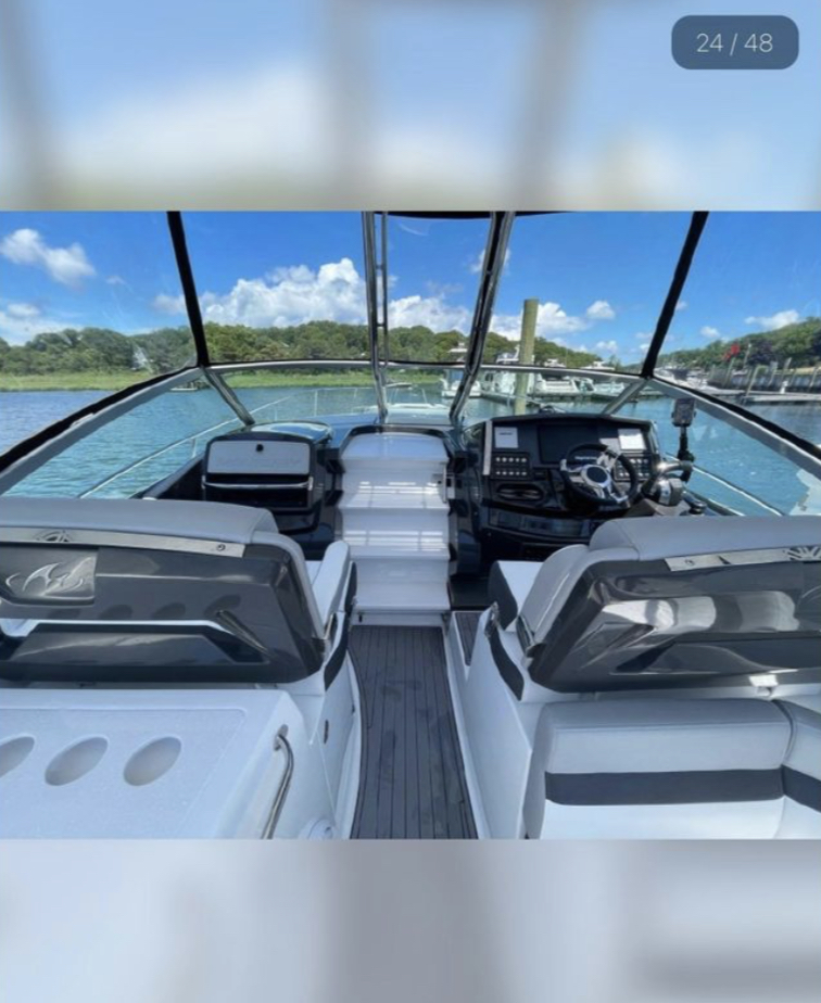 2021 Monterey 335 Sport Yacht. 185 hours on the Twin Mercruiser 6.2L 300HP engines with Digital Throttle Shift, AXIUS (Joystick) and SEACORE Outdrives. This package pushes her to a top-end speed in the low 40s mph and cruise in the mid-30s mph. Boat is turnkey and has been maintained with an open checkbook since she was bought.