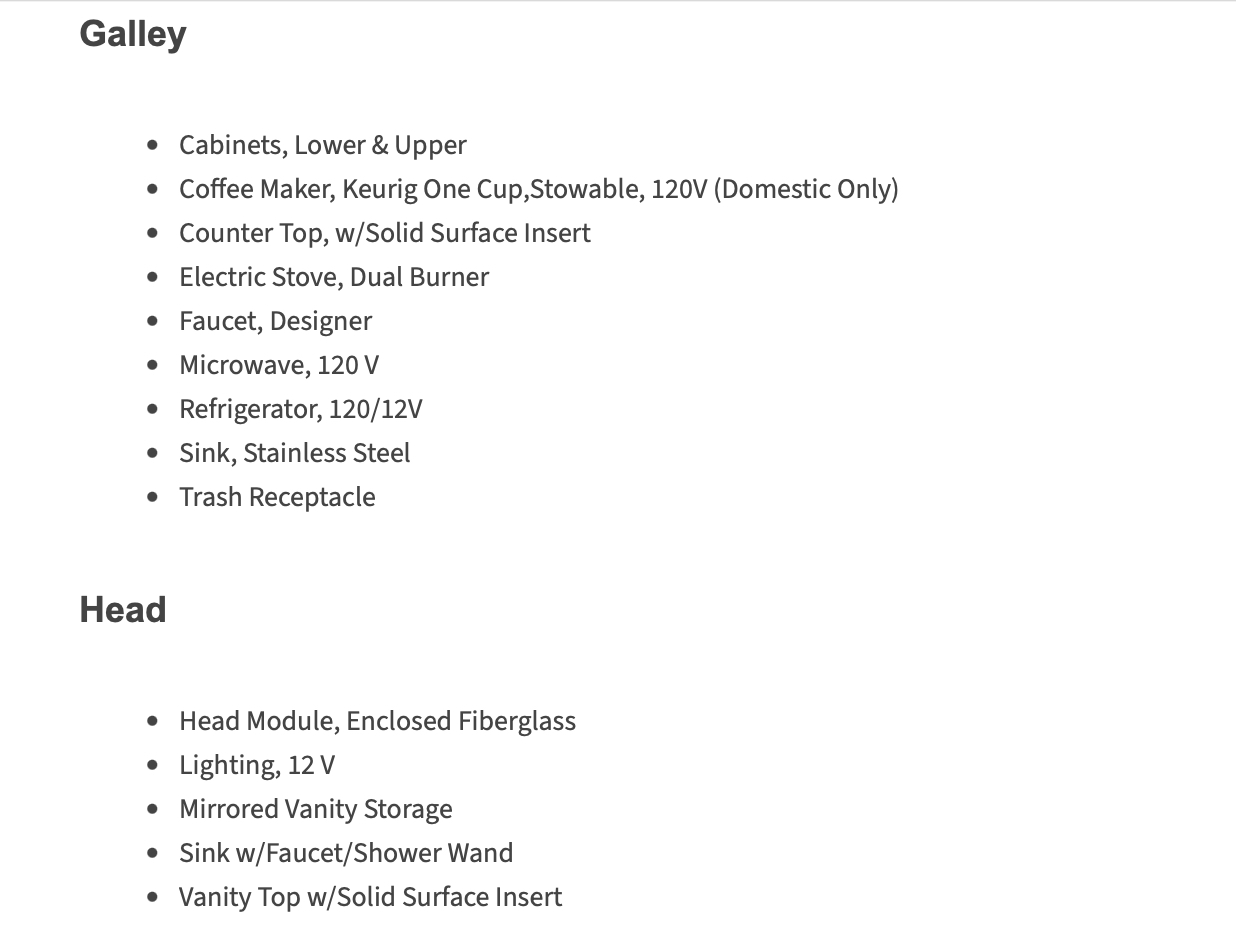 - Drinking water tank: 42 gal