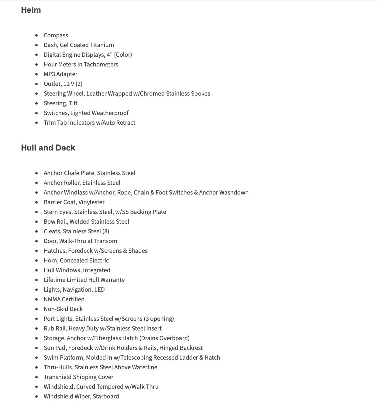 - Hull type: Fiberglass