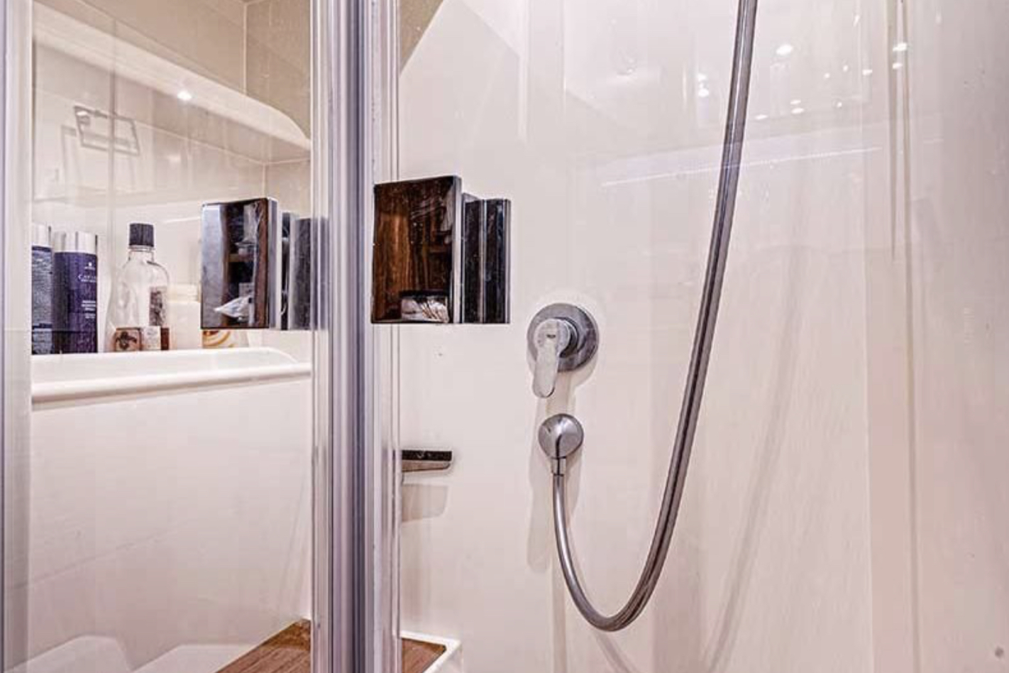 The propeller efficiency has reached almost 60% which is exceptionally good. The propellers are protected by a deep and long keel and supported by robust V struts for maximum strength.