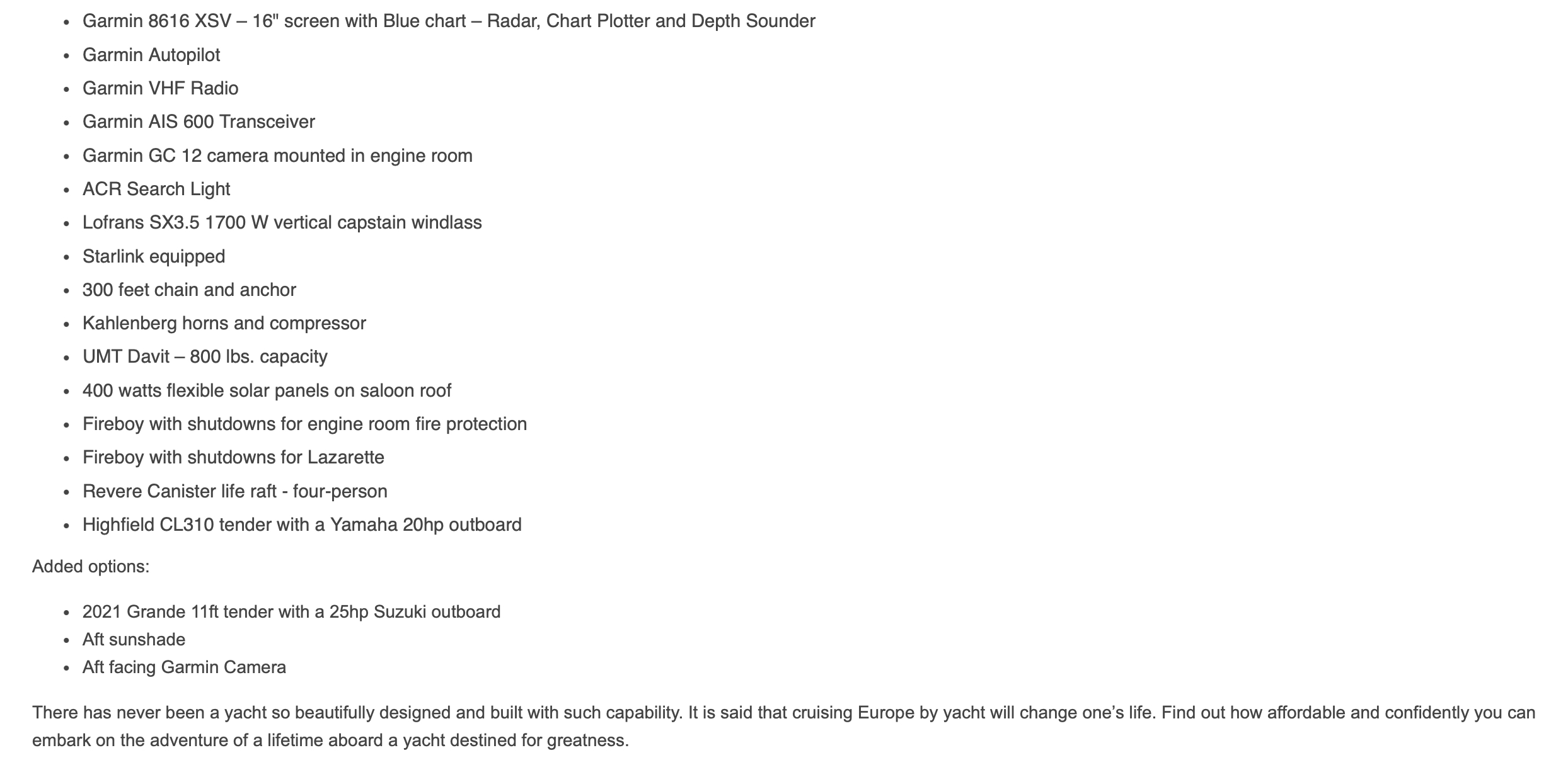 N.B. Voir l’onglet PIECES JOINTES pour tous les détails de ce NORDHAVN 41