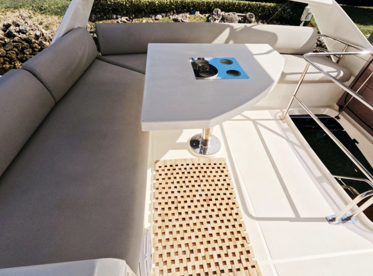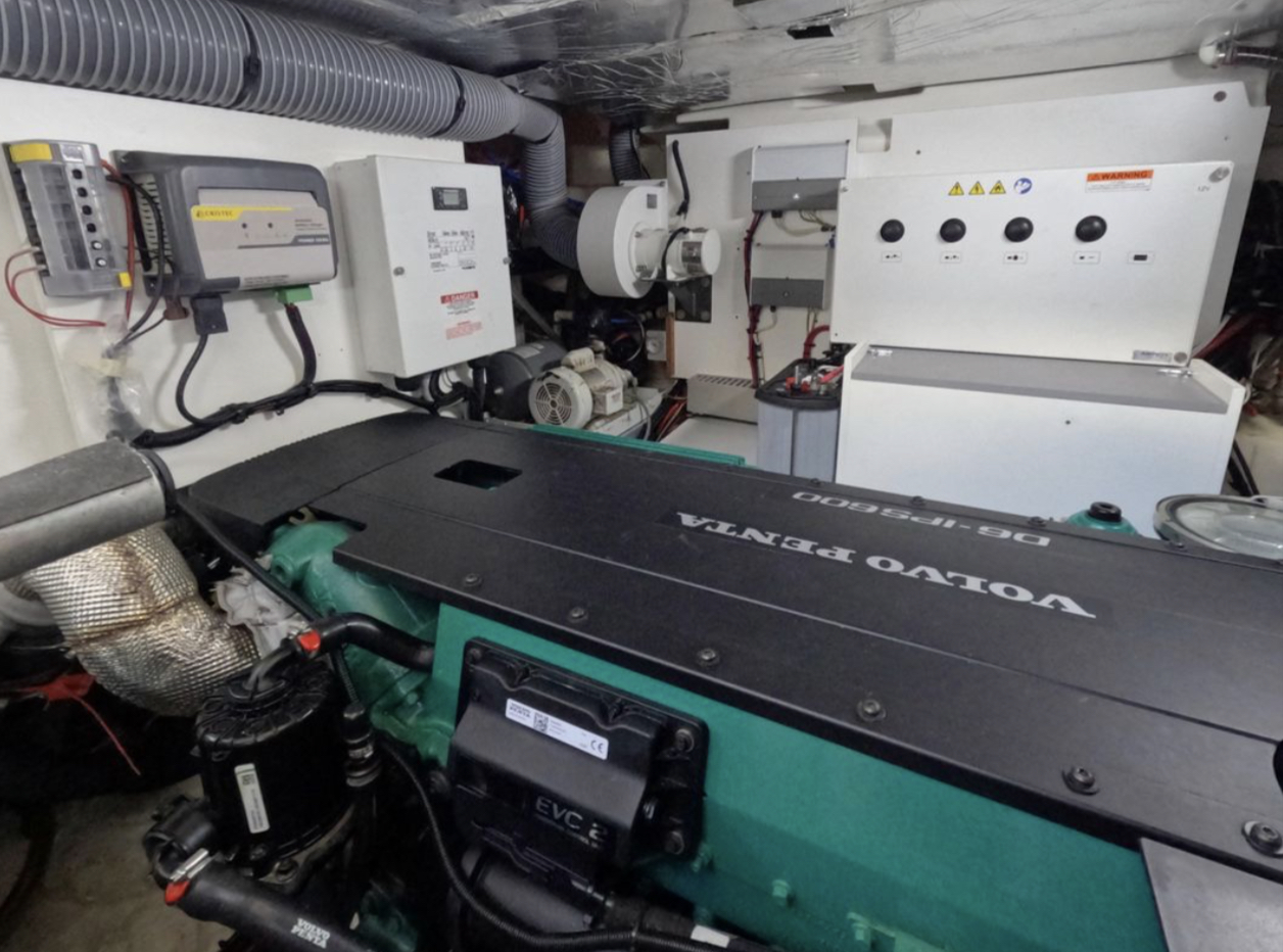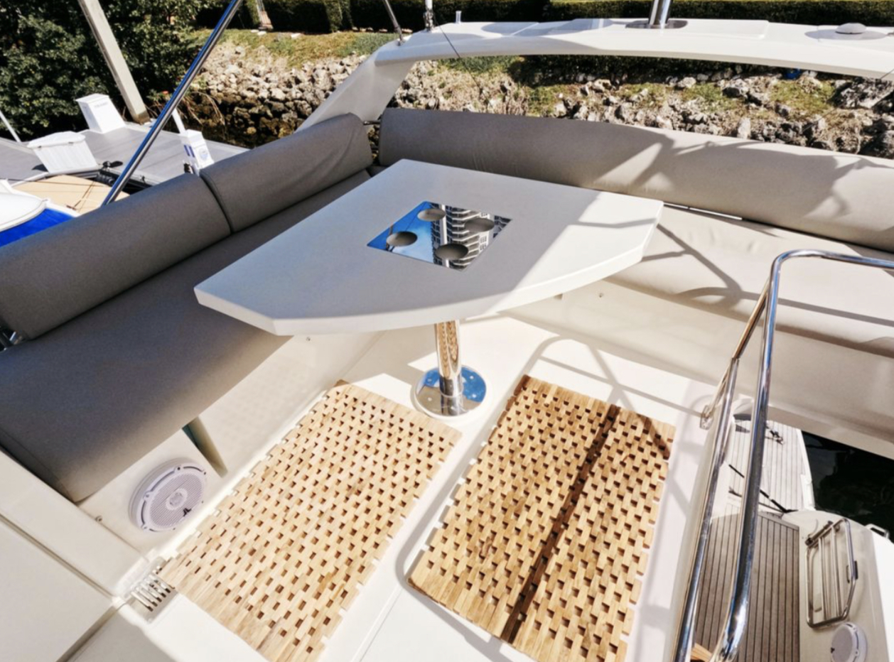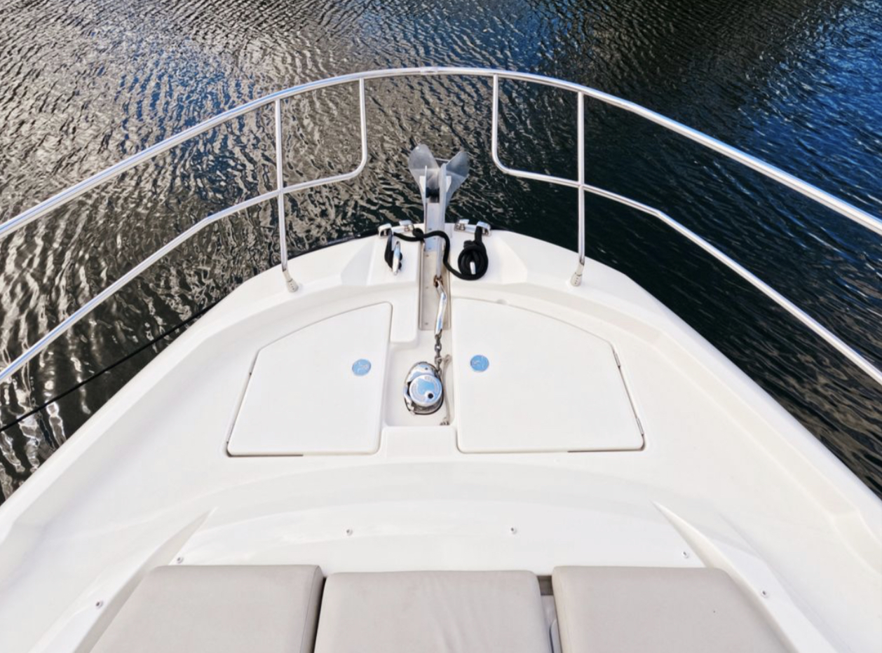 Powered by twin Volvo Penta diesel engines, this yacht offers smooth performance and efficiency. The Joystick control system ensures precise boat handling, making docking and maneuvering a breeze.