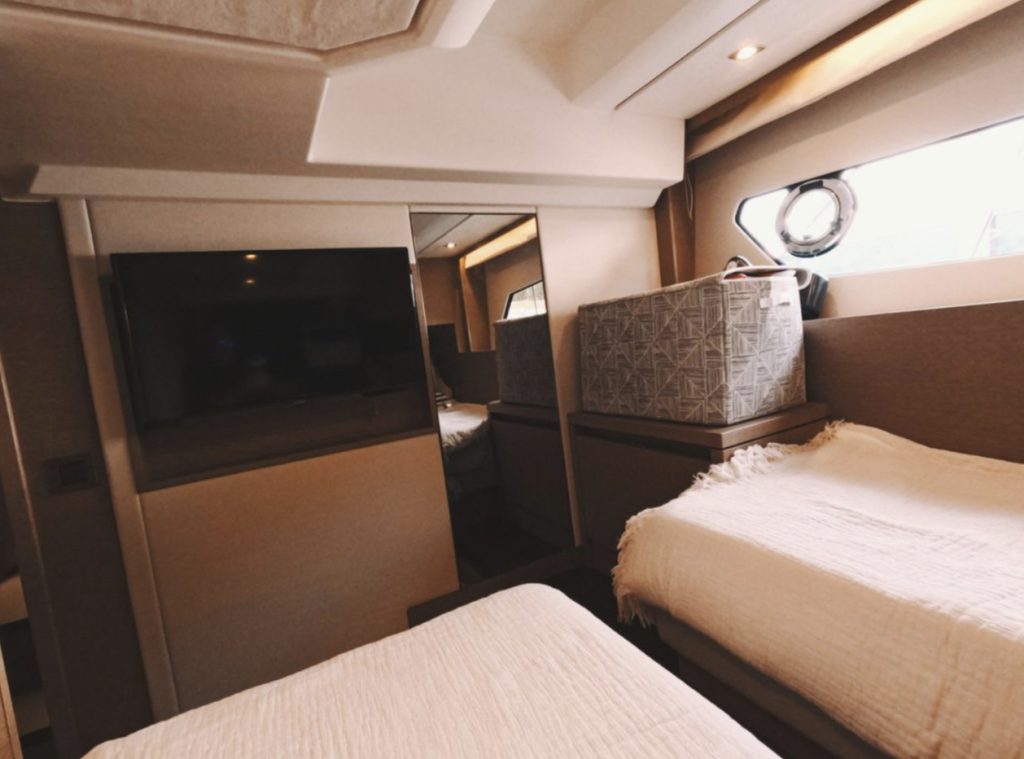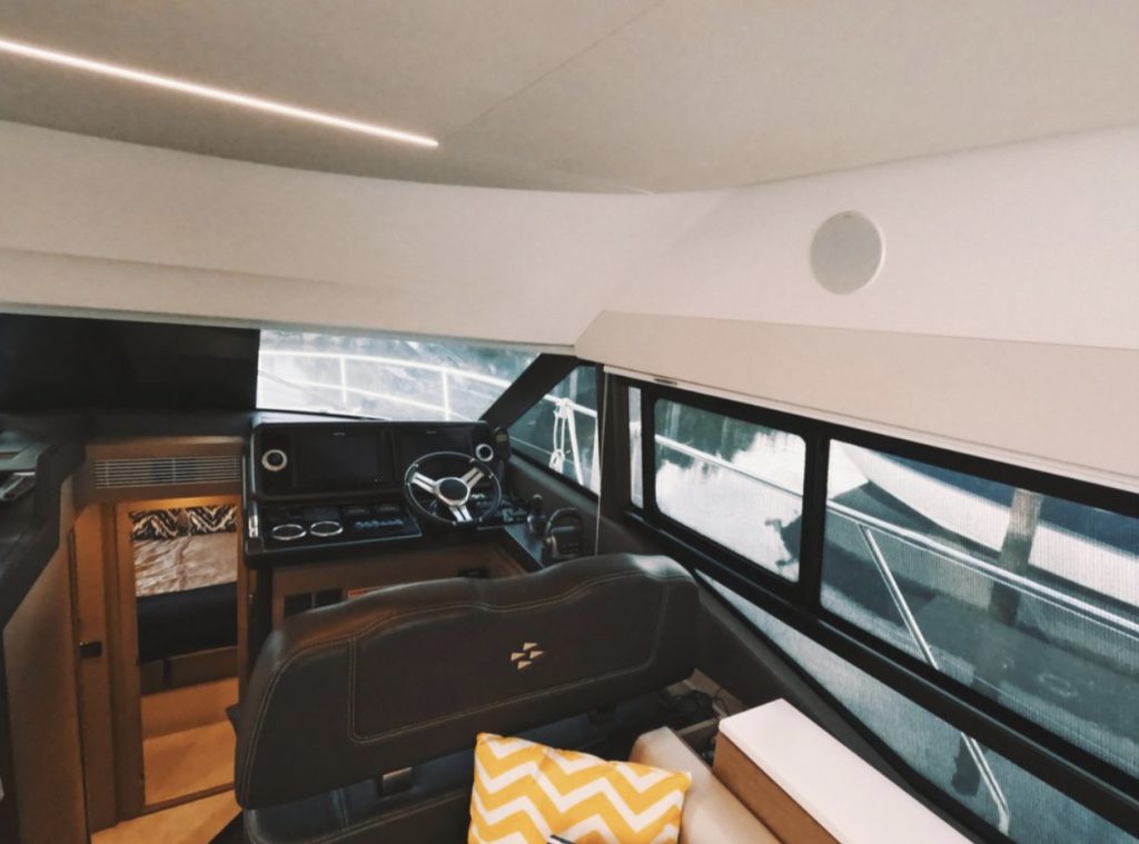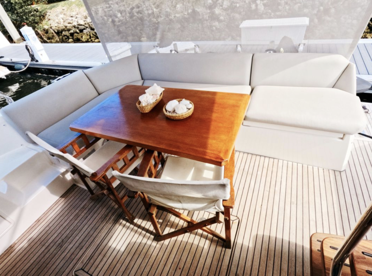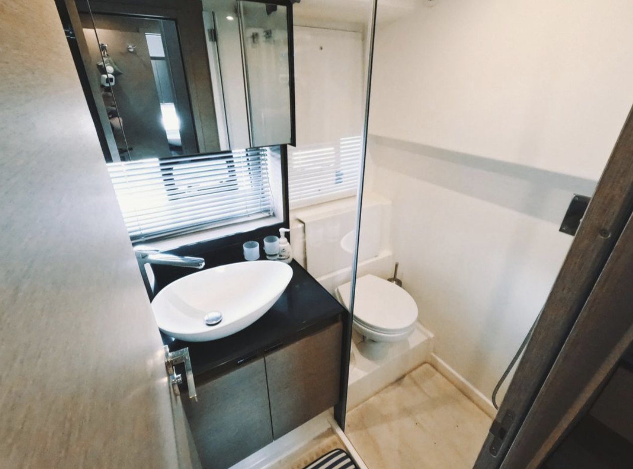 Powered by twin Volvo Penta diesel engines, this yacht offers smooth performance and efficiency. The Joystick control system ensures precise boat handling, making docking and maneuvering a breeze.