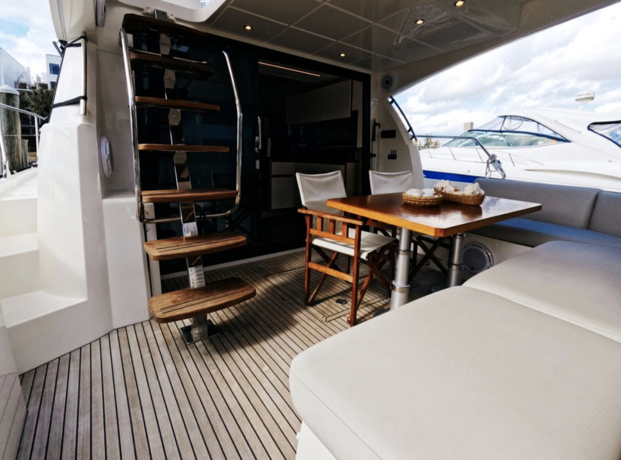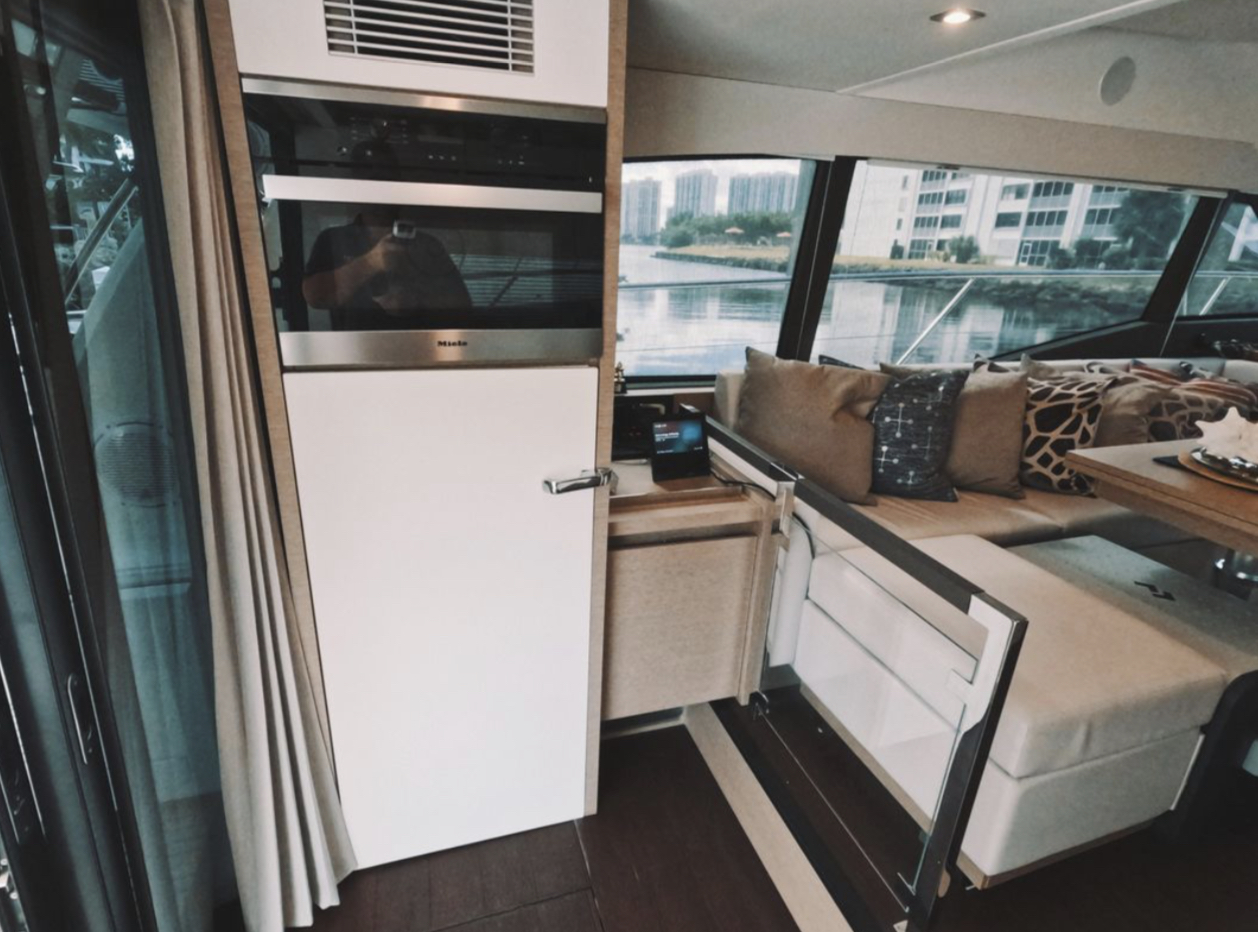 The contemporary layout of the exterior galley located to the aft opens onto an immense swim platform. The very comfortable flybridge is an invitation to complete relaxation. On board, everything has been optimized to offer unequaled space and comfort.