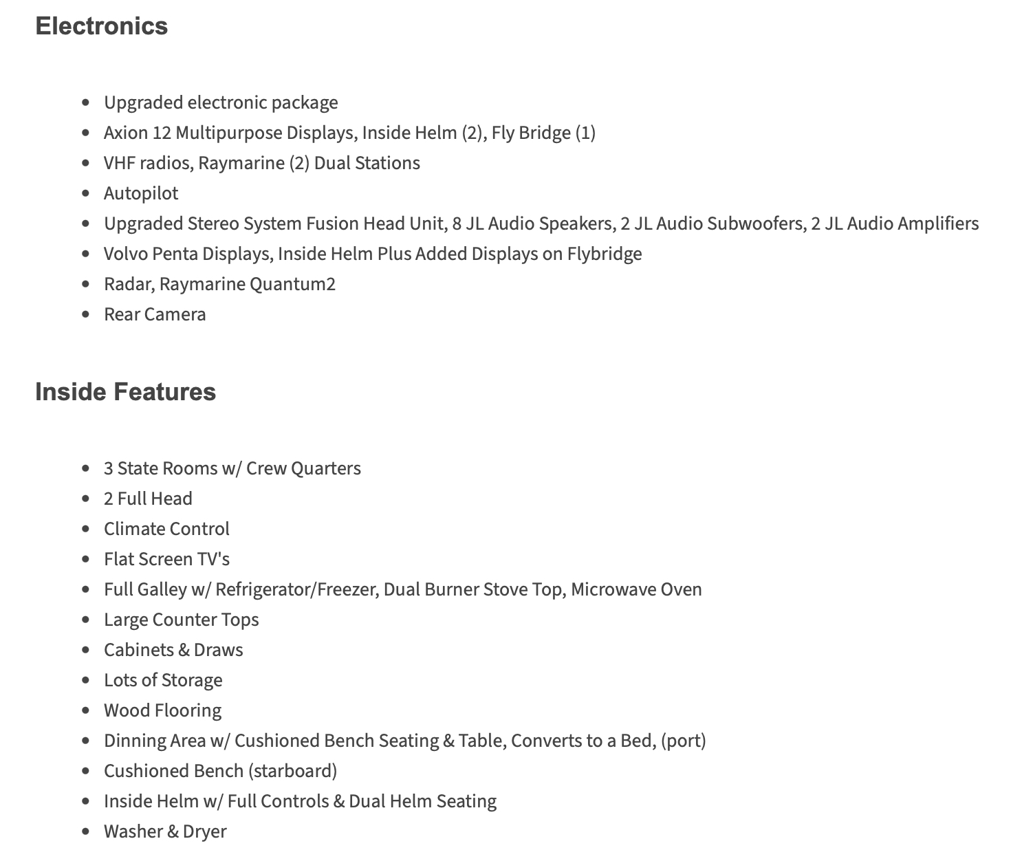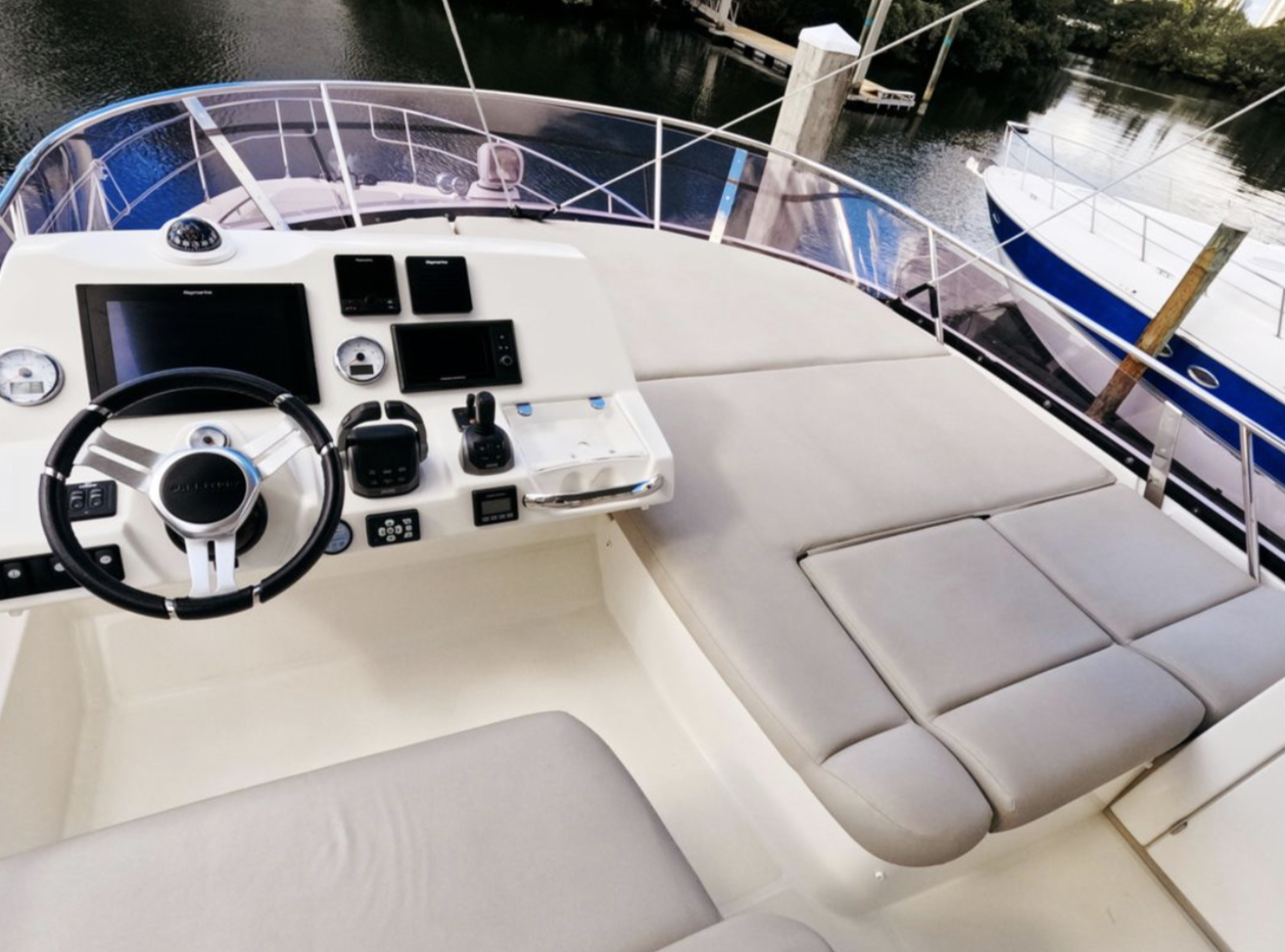 A custom-built staircase with larger steps provides easy access to the spacious flybridge. All maintenance is current, making this vessel ready for its next adventure. Don’t miss the opportunity to own this exceptional yacht!