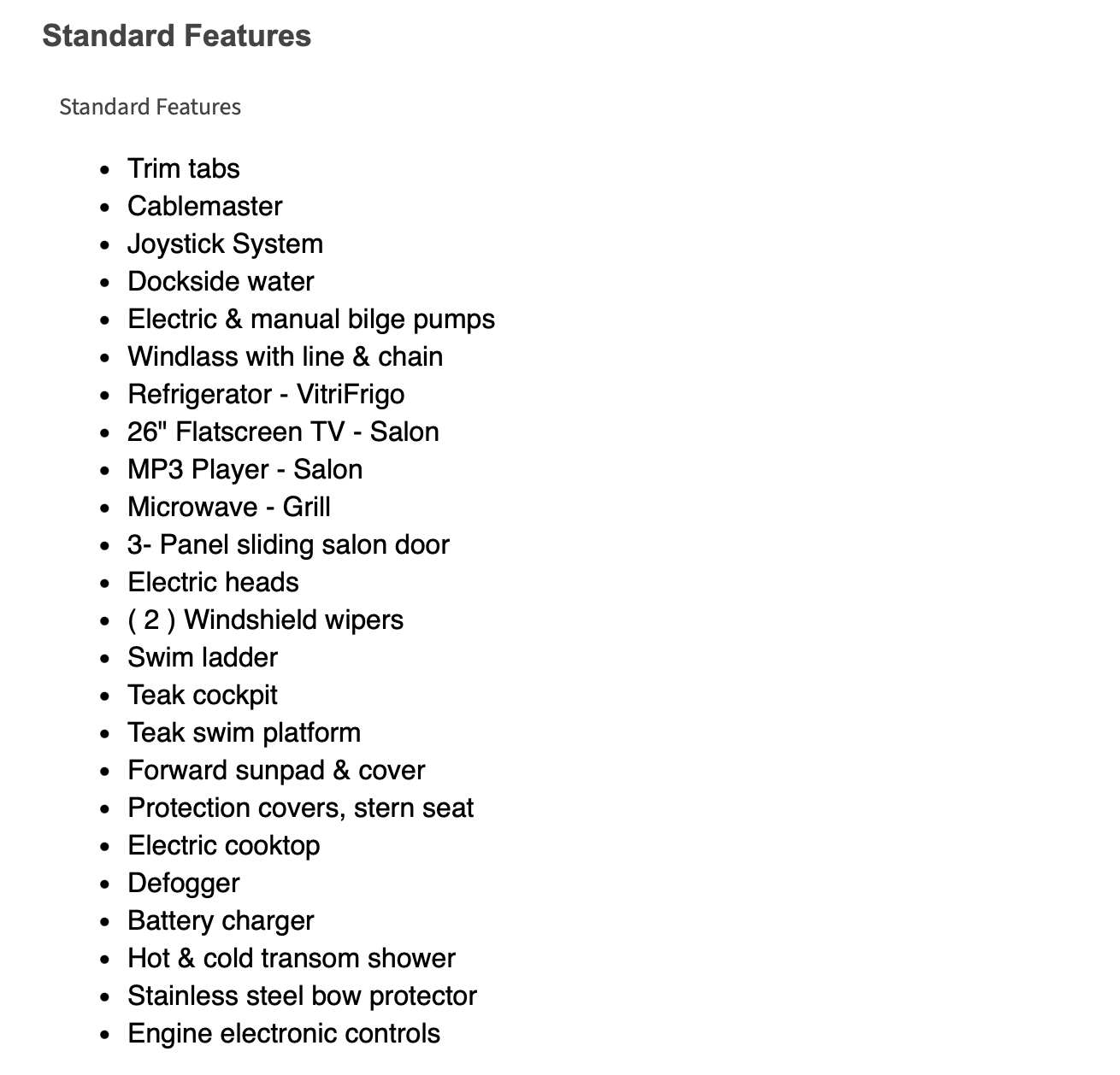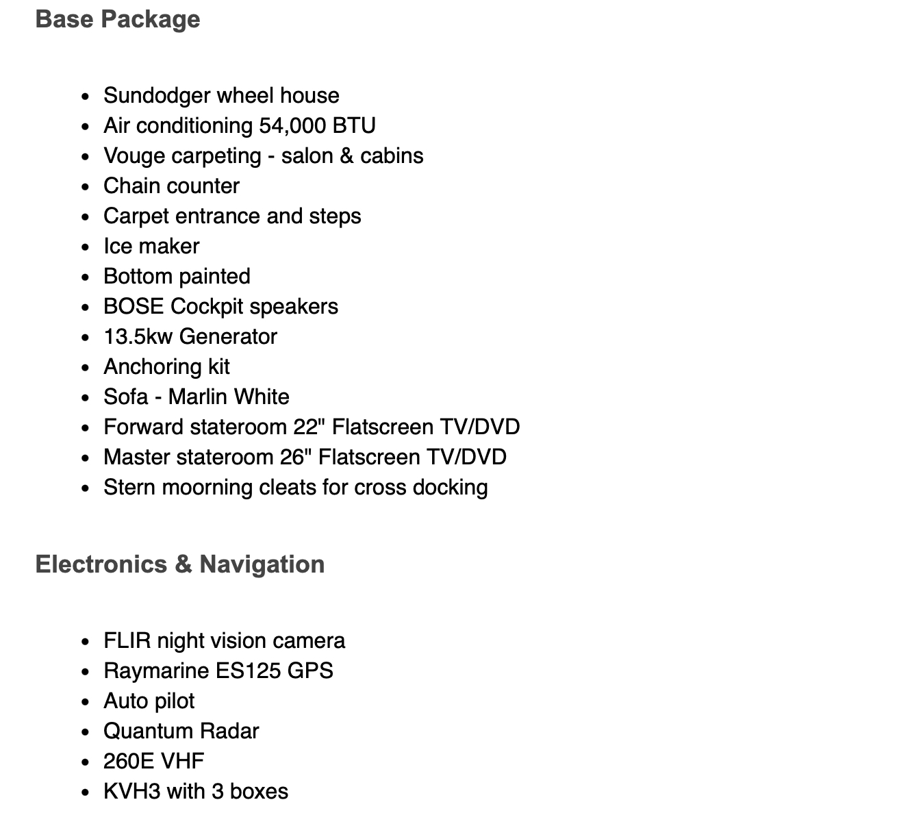 The boat presented on this page is for information purposes only and is not necessarily available for sale and/or rent. This boat is offered under reserve, availability to be verified. This document or this announcement is not contractual. The boat information displayed in the above results is presented in good faith and, while believed to be correct, is not guaranteed. Ita Yachts Canada Inc. and/or ProprioBateau does not offer warranty or assume any legal liability or responsibility for the accuracy, completeness, or usefulness of the information and/or images displayed, as they may not be current or may be images of a comparable boat. All boat information is subject to change without notice and is without warranty. This boat may be offered by another broker open to co-brokerage.