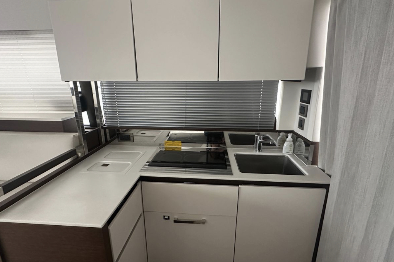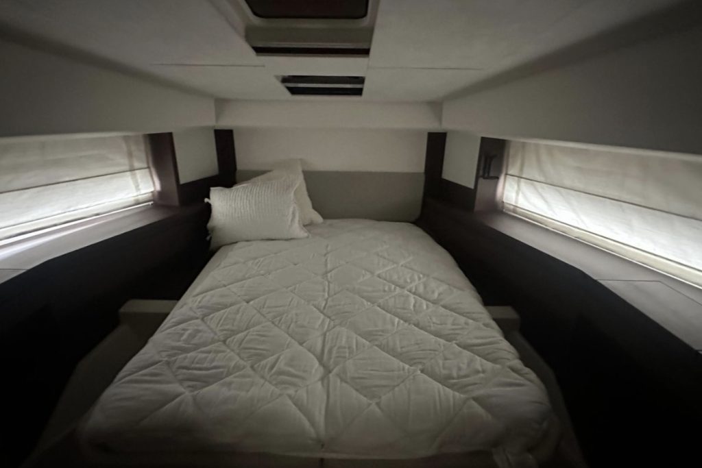 Open the sunroof, side window and stackable, sliding salon doors to provide natural breezes throughout. The full beam midship master stateroom plus the forward V-berth allow for weekend trips with the family or an overnight getaway with friends.