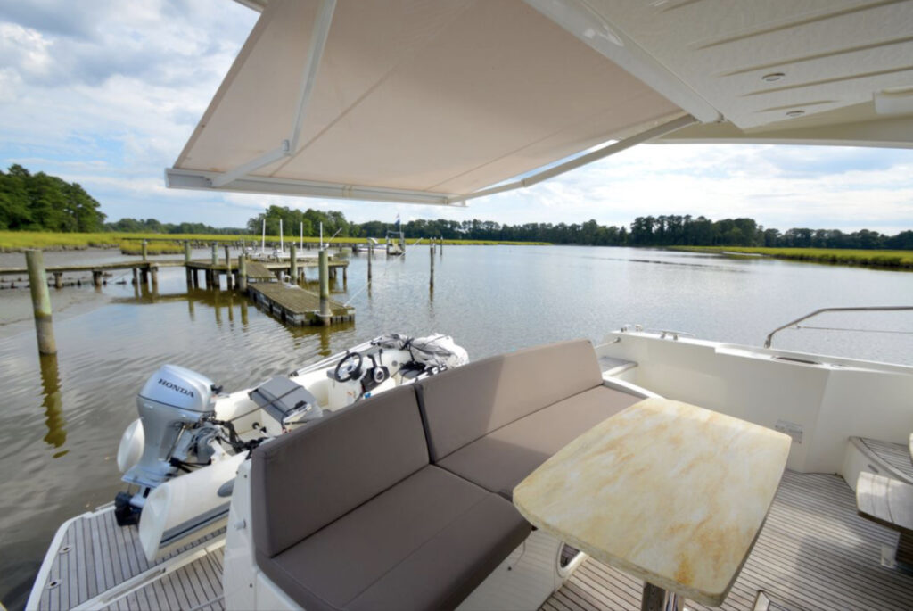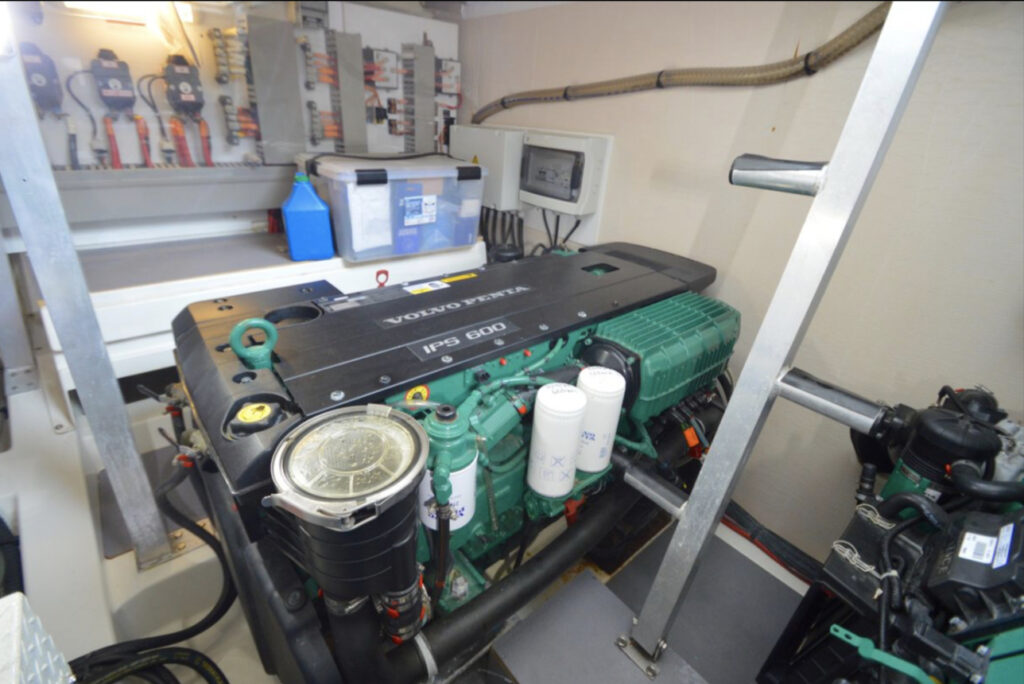 “The Office” is a pleasure to run and is a breeze to handle around the dock with her Volvo IPS 600’s (only 705 hours!), joystick docking and bow thruster! She also features an aft docking station in the cockpit. Rounding out the package is a hydraulic swim platform for easy launching of a tender and doubles as a “swim up beach” when resting at anchor.