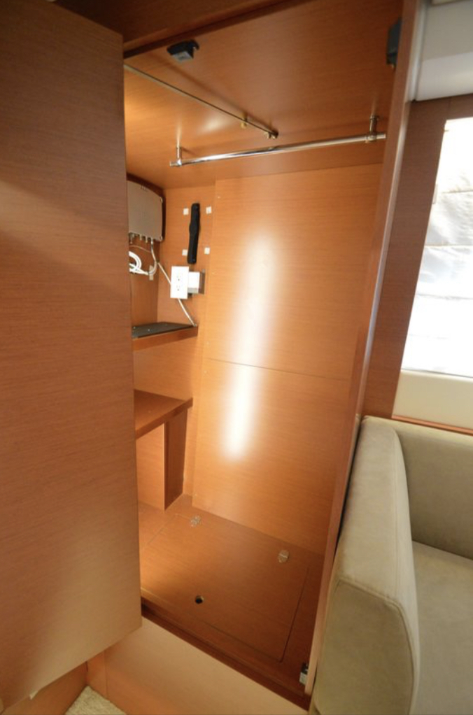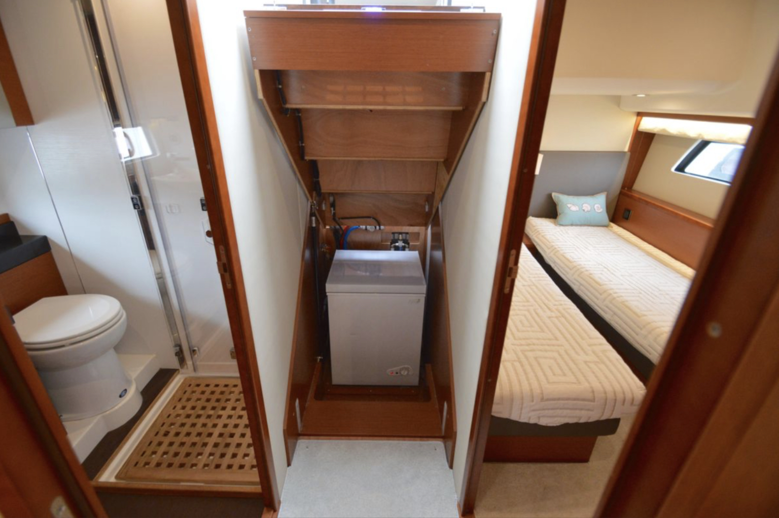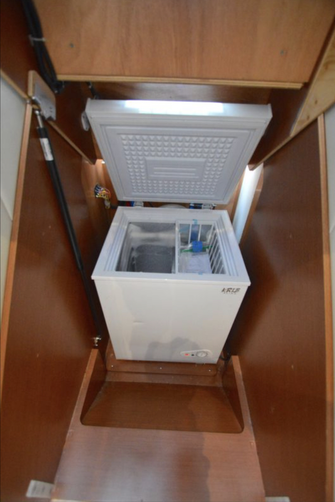 Drop in freezer underneath companionway stairs added for extra freezer space in lieu of combination washer and dryer. Combination washer and dryer is in storage for anyone who would value that over the extra freezer space and would want to change it back out as an option.