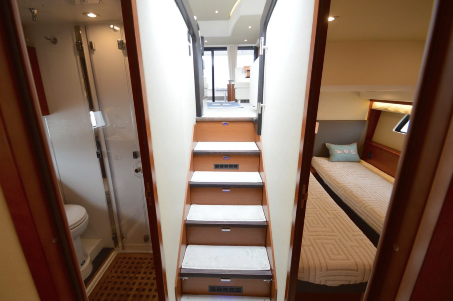 With an innovative three stateroom layout, featuring a separate private companionway to a full beam master, and two full heads owners and guests alike are treated to comfort and privacy. Her galley up and aft flows easily to the cockpit for alfresco dining and the salon is filled with light and 360 degree views from windows all around.