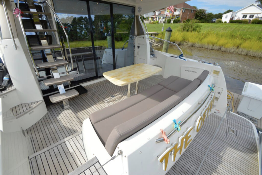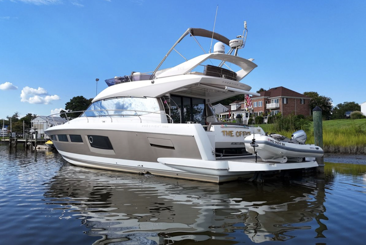 Conveniently located in Baltimore’s Inner Harbor, just minutes off of I-95 and only 20-25 minutes from Baltimore Washington International (BWI) airport, she is always a pleasure to show and appointments are requested. The boat will be hauled at the end of September for fresh and routine bottom paint, prop speed and zincs as well as her Fall detailing. “The Office” is the clear standout Prestige 500 on the market and is a boat not to be missed!