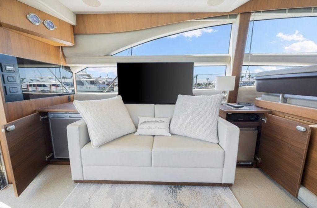 Powered by upgraded twin 800-HP MAN diesels with joystick maneuvering tied into both bow and stern thrusters, she delivers confident handling, responsive control, and impressive speed capability. Seakeeper Stabilization, premium systems upgrades, and a comprehensive recent 1,000-hour engine service further distinguish her as a turnkey offering.
