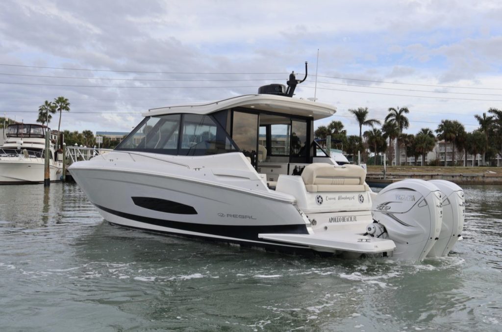 Welcome aboard this impeccably maintained 2022 Regal 36 XO, a premium outboard-powered yacht that perfectly blends the versatility of a bowrider with the comfort and protection of a coupe-style cruiser.