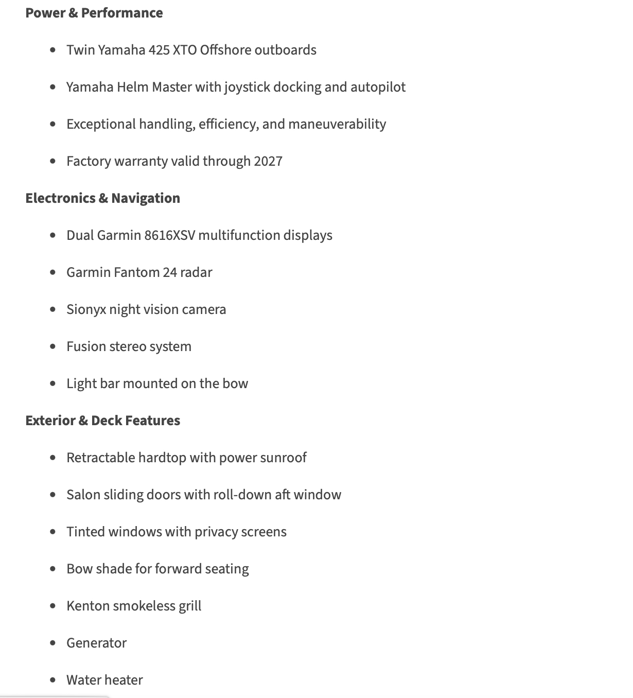 This vessel has been meticulously cared for, recently completing its 100-hour service, with bi-monthly detailing and quarterly waxes. The result is a yacht that truly shows like new and is ready for immediate enjoyment.