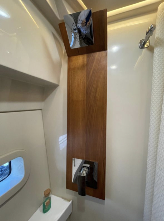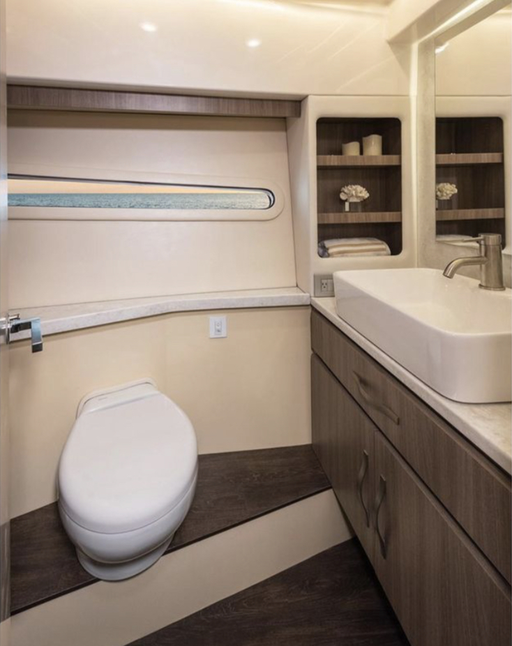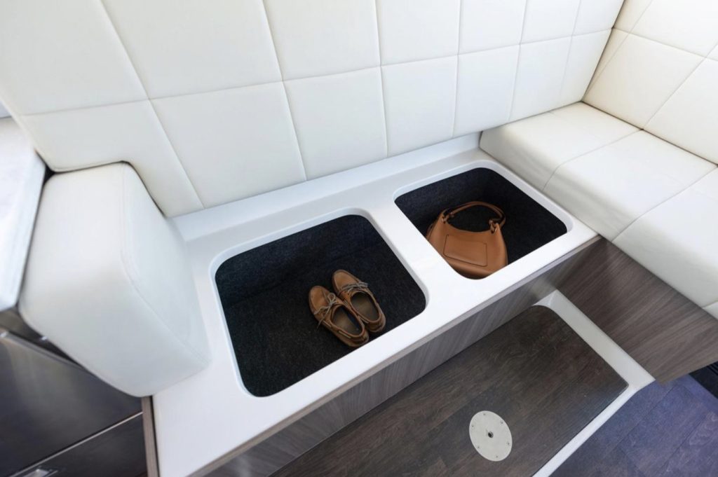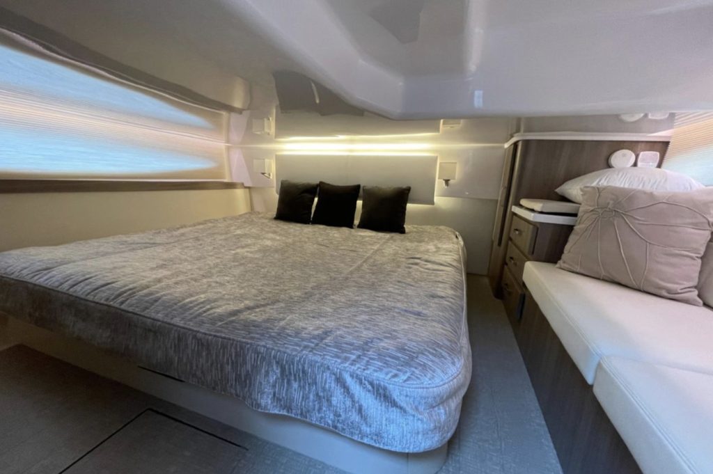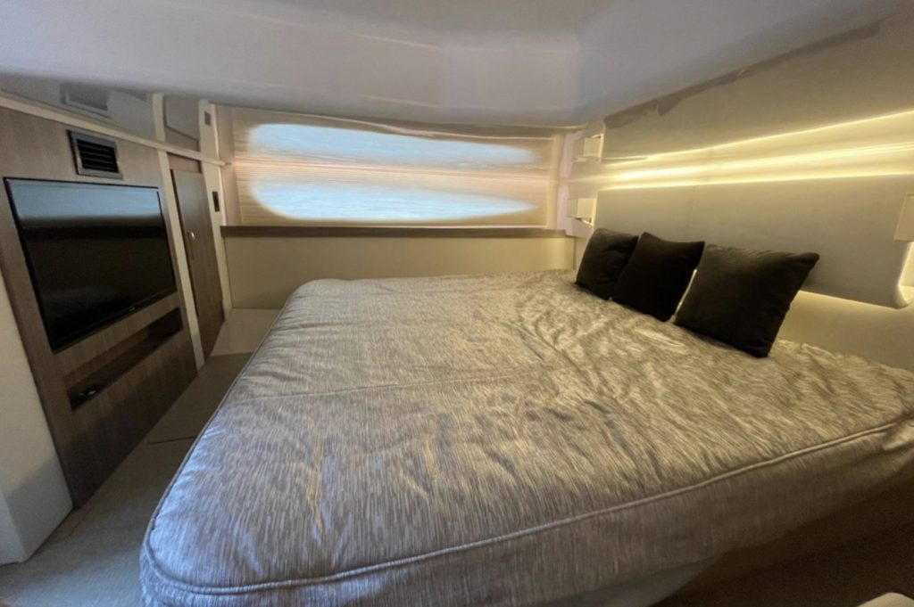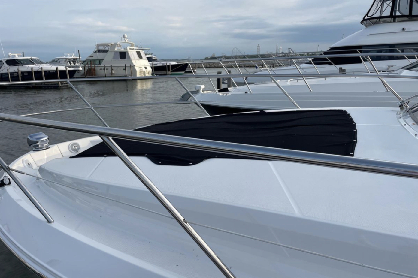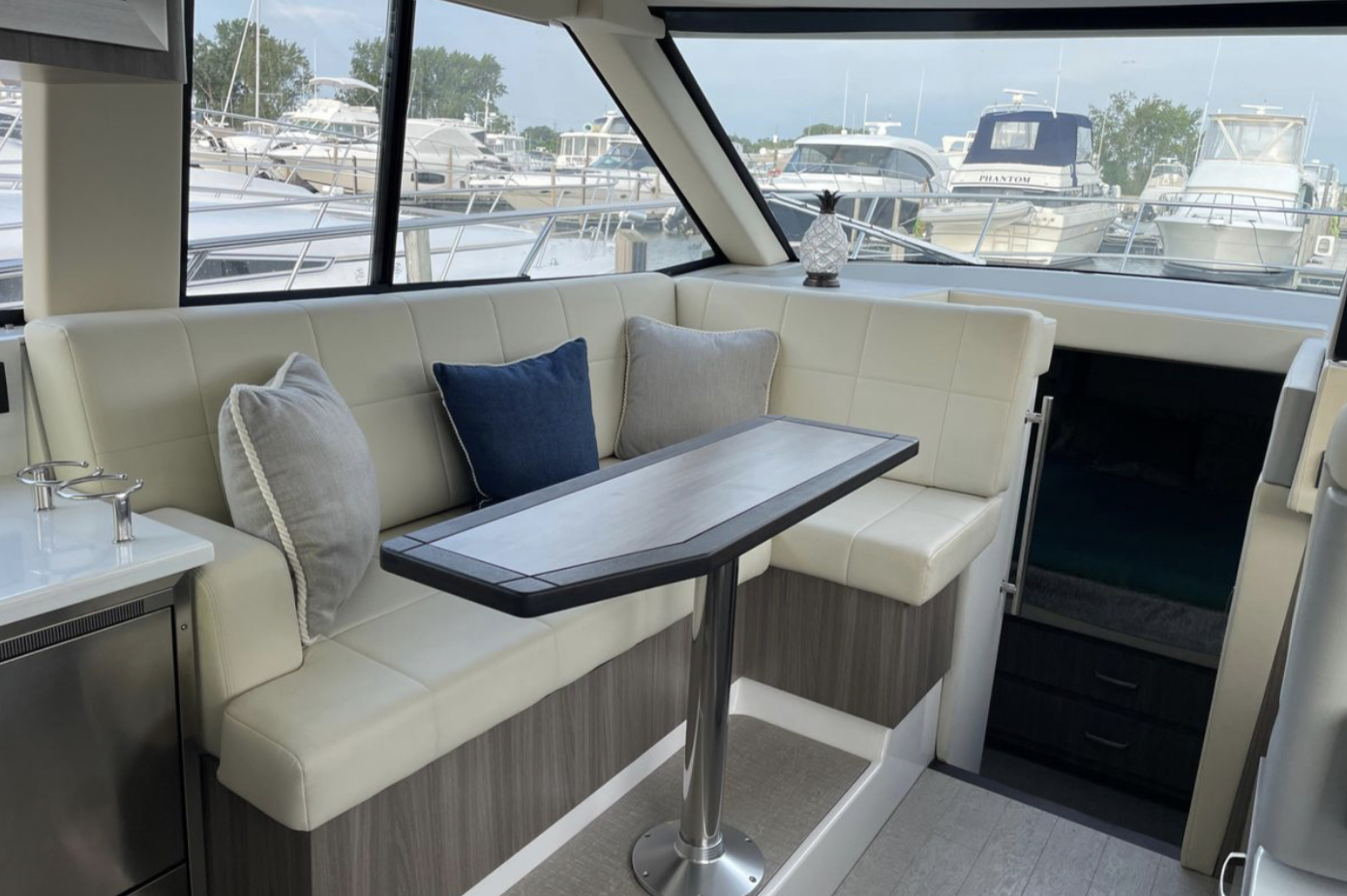 Step aboard and experience unmatched comfort and versatility. The open cockpit flows seamlessly into the salon, creating a single expansive living space. With the push of a button, the power window lowers and sliding enclosure doors disappear, blending the indoors with the outdoors for a premium on-the-water experience.