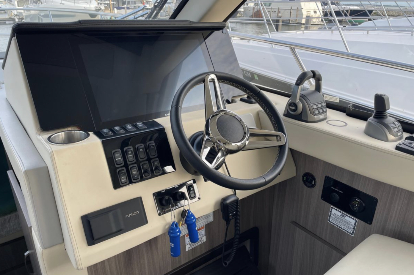 Joystick control, plus a bowthruster! This is a one owner, freshwater boat that shows like new.