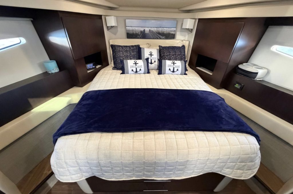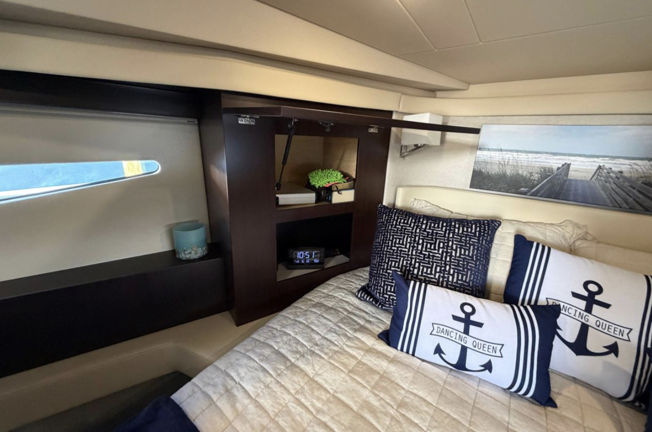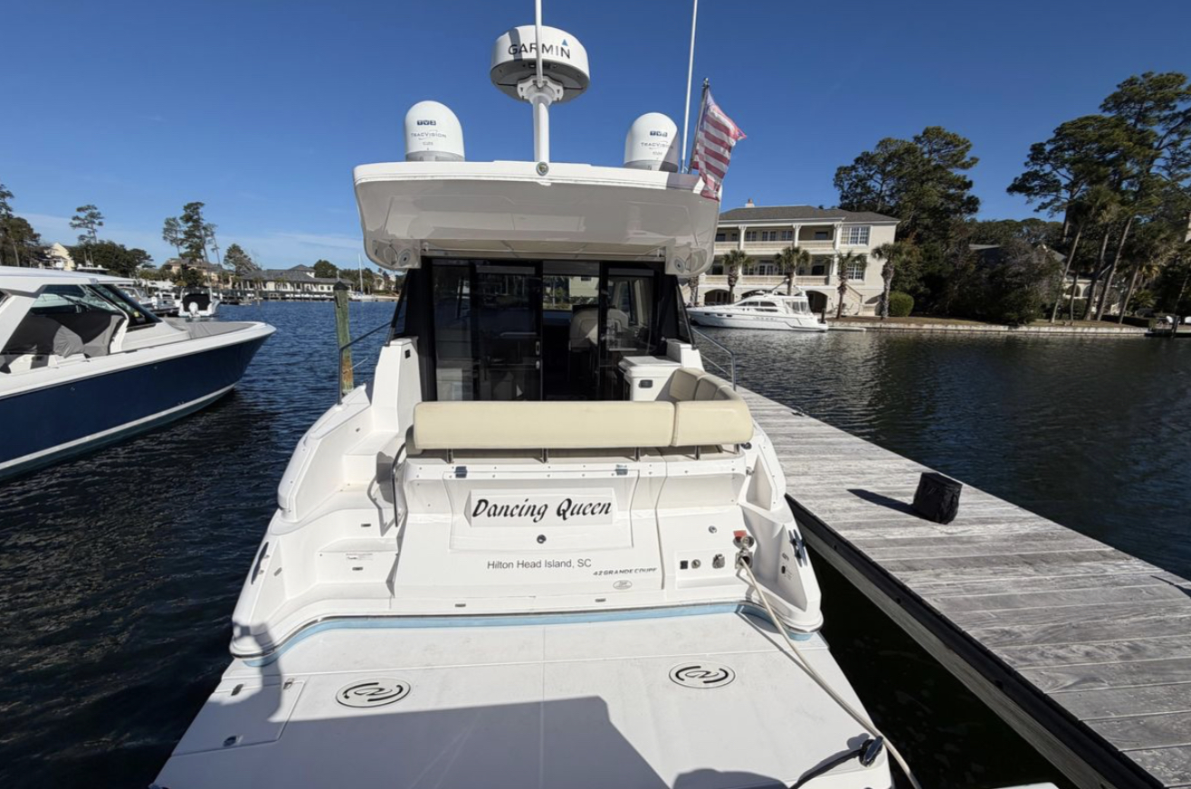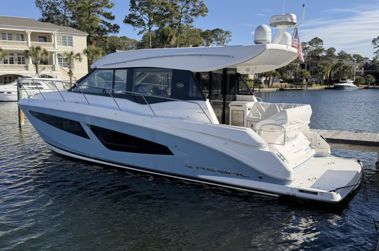 This Regal 42 Grand Coupe has been well maintained. With the Volvo Penta IPS500 joystick pod drives, she is economical and fast. Enjoy the comfort of a private forward queen berth and an aft berth that can be made up as a king or separated as twins.