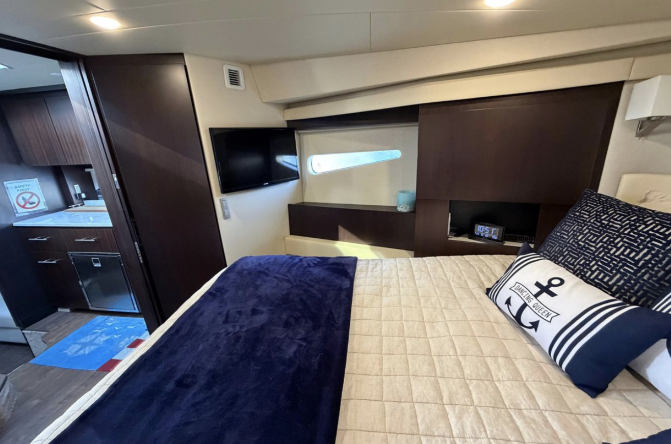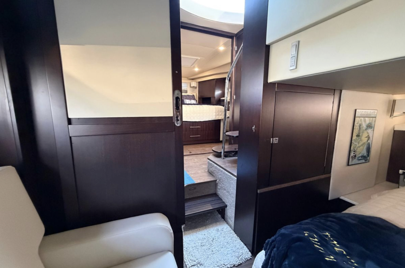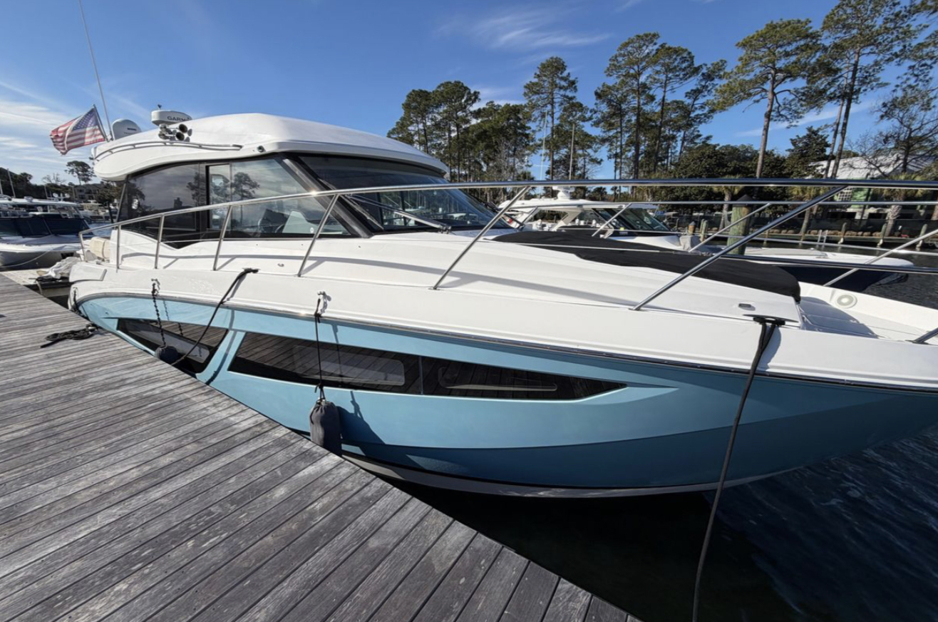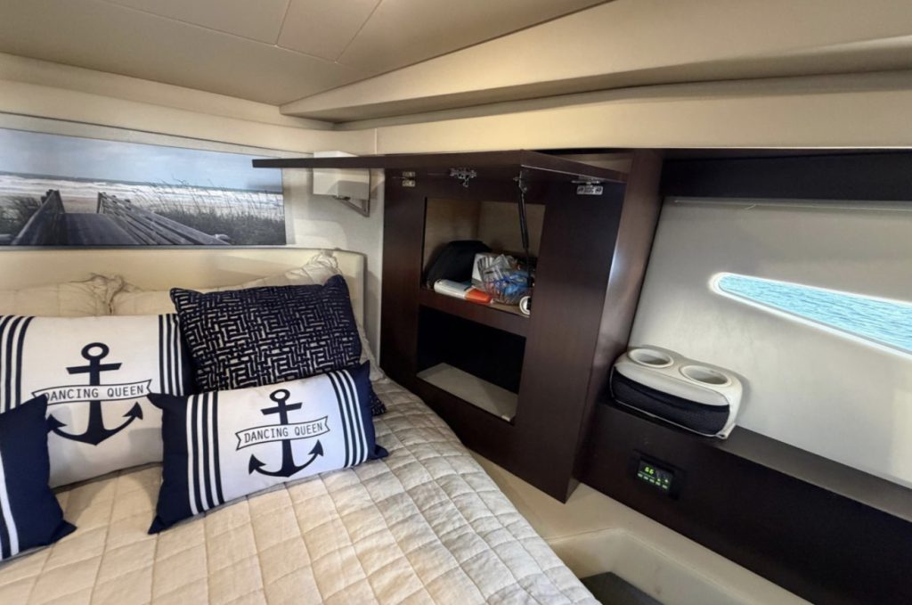 This Regal 42 Grand Coupe has been well maintained. With the Volvo Penta IPS500 joystick pod drives, she is economical and fast. Enjoy the comfort of a private forward queen berth and an aft berth that can be made up as a king or separated as twins.