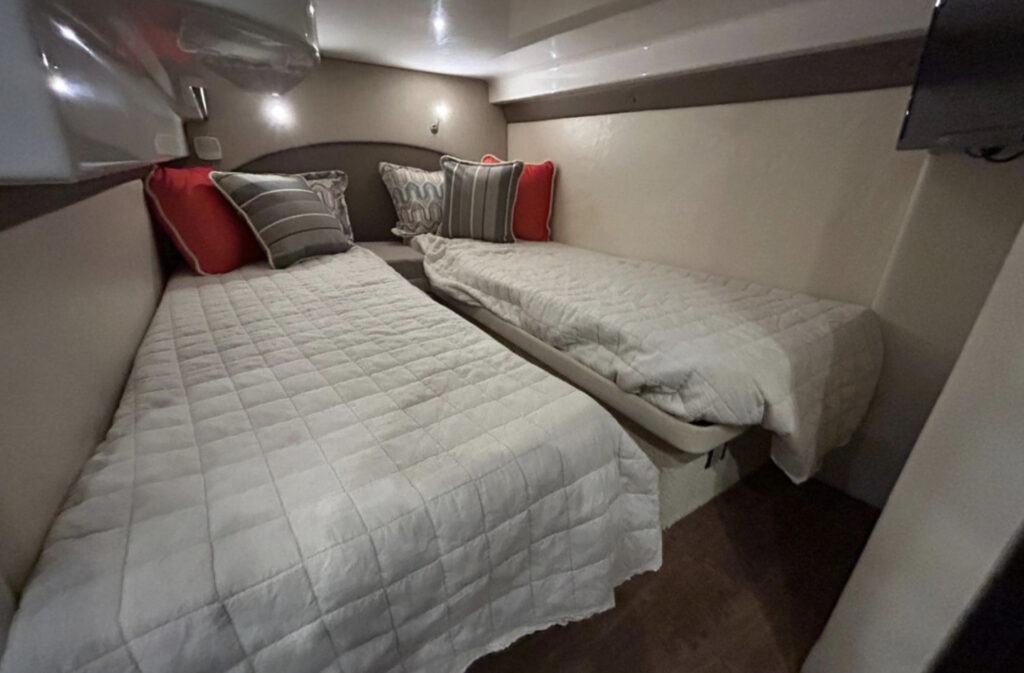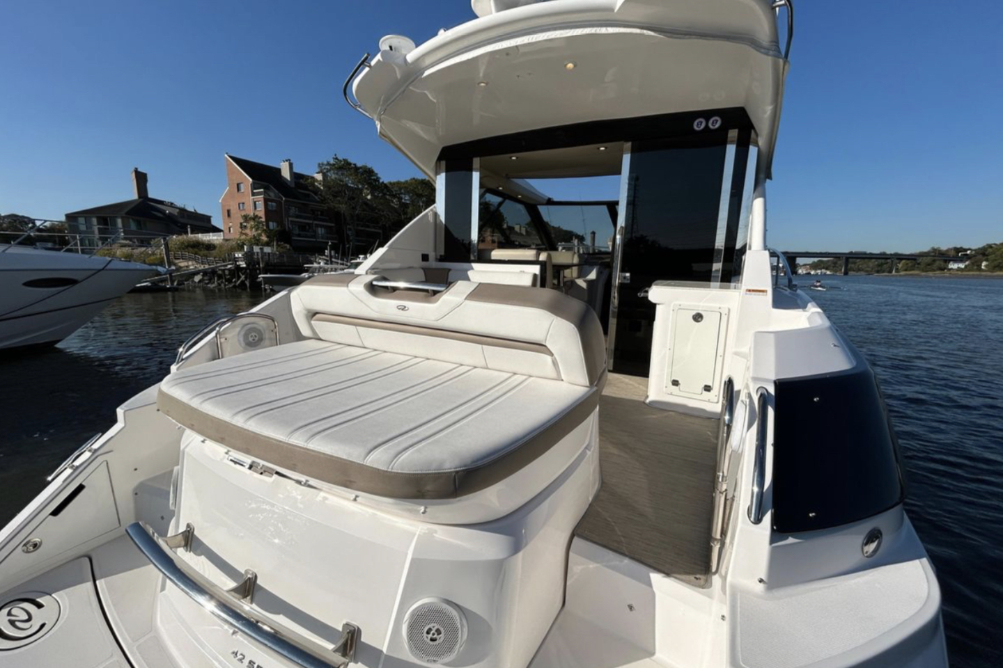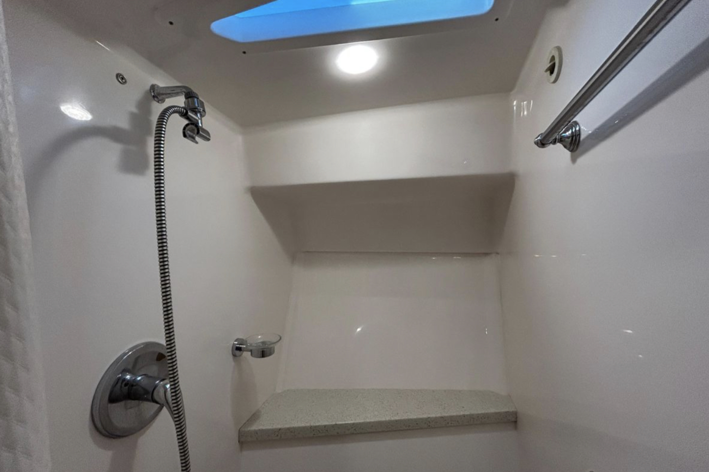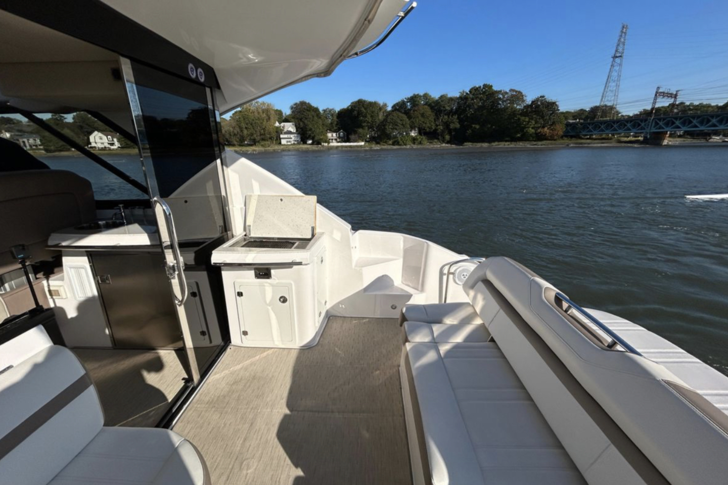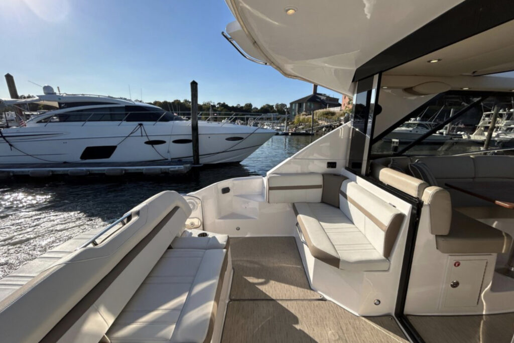 Equipped with IPS joystick control, Garmin electronics, high-end interior features, and numerous comfort enhancements, this is a ready-to-sail yacht that checks all the boxes.