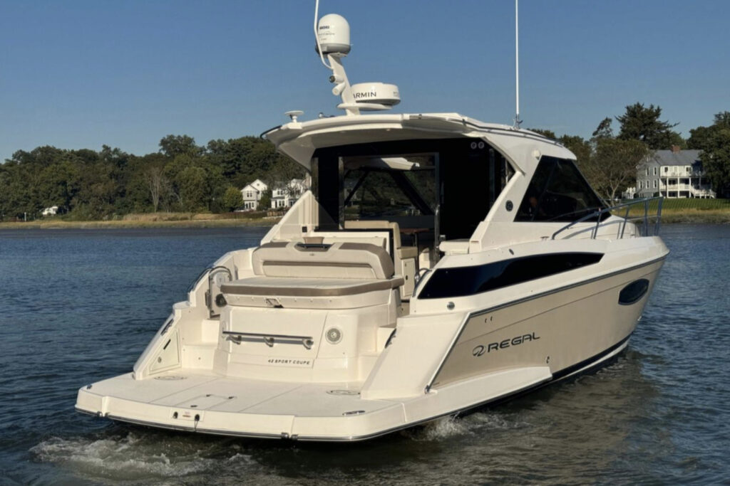 Don’t miss your chance to own this magnificent 2018 Regal 42 Sport Coupe. Regal has absolutely nailed the design with its spacious layout of 2 cabins, 2 bathrooms, and luxurious finishes throughout. This fuel-efficient, all-weather sport cruiser is designed for performance and comfort.