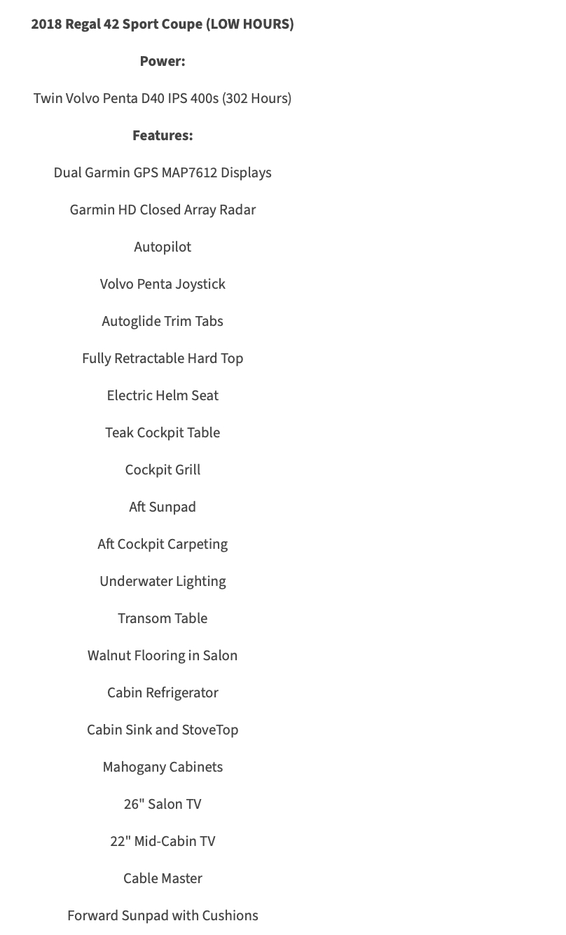 N.B. Voir l’onglet PIECES JOINTES pour les détails de ce Regal 42 Sport Coupe
