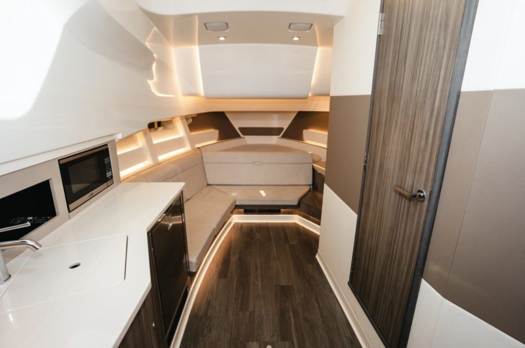 Conversation flows naturally in multiple areas throughout the boat, expertly crafted for comfort. In addition, the Sundancer 370 Outboard presents a multitude of next-generation technologies and upscale amenities to ignite your passion for the water unlike ever before. It’s also available in a Coupe model offering a hardtop with a full windshield and electrically actuated windows.