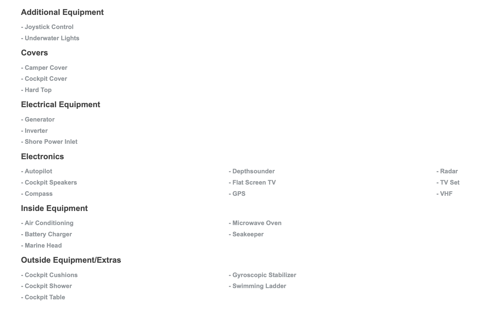 - Boat stabilizers (Seakeeper)