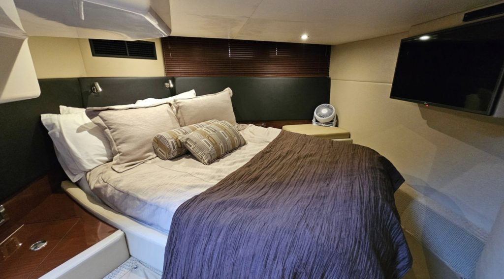 Accommodating two well-appointed cabins and two heads, featuring forward VIP berth with private head & shower. Full Beam Aft Master with private en-suite. This vessel has been maintained with an open checkbook.