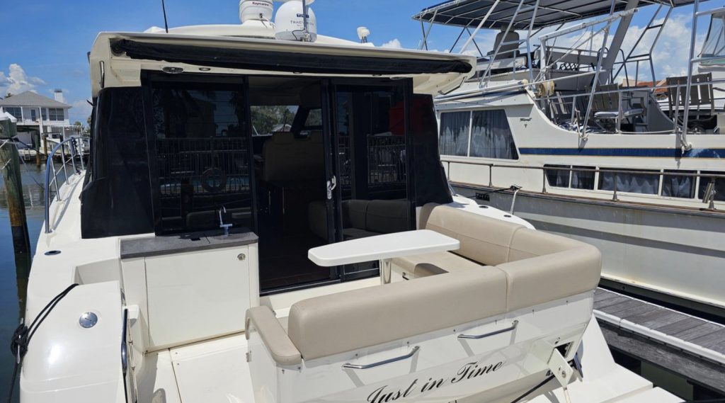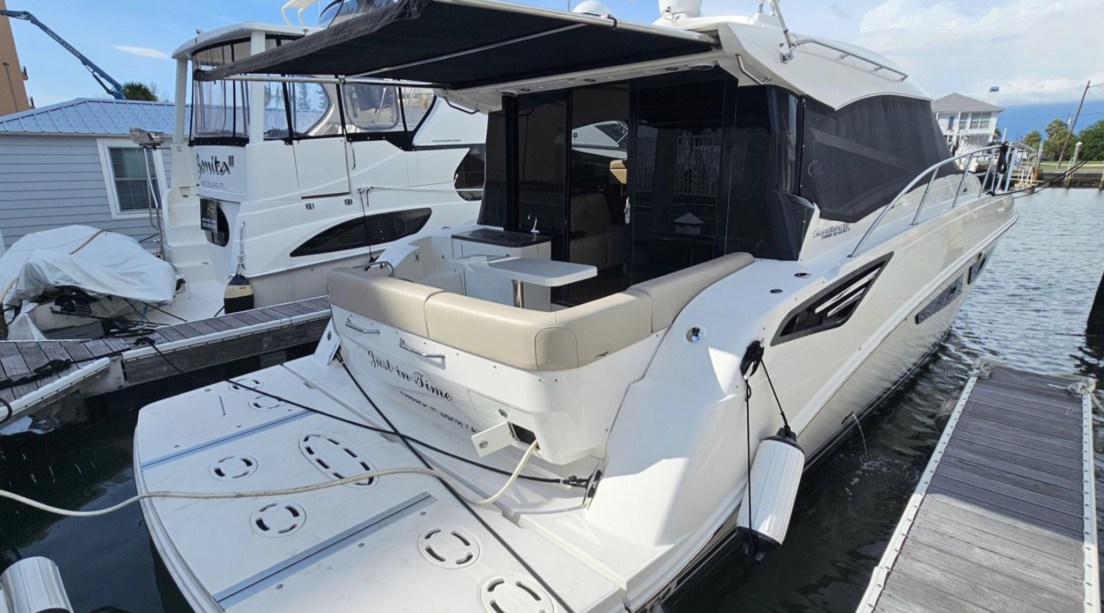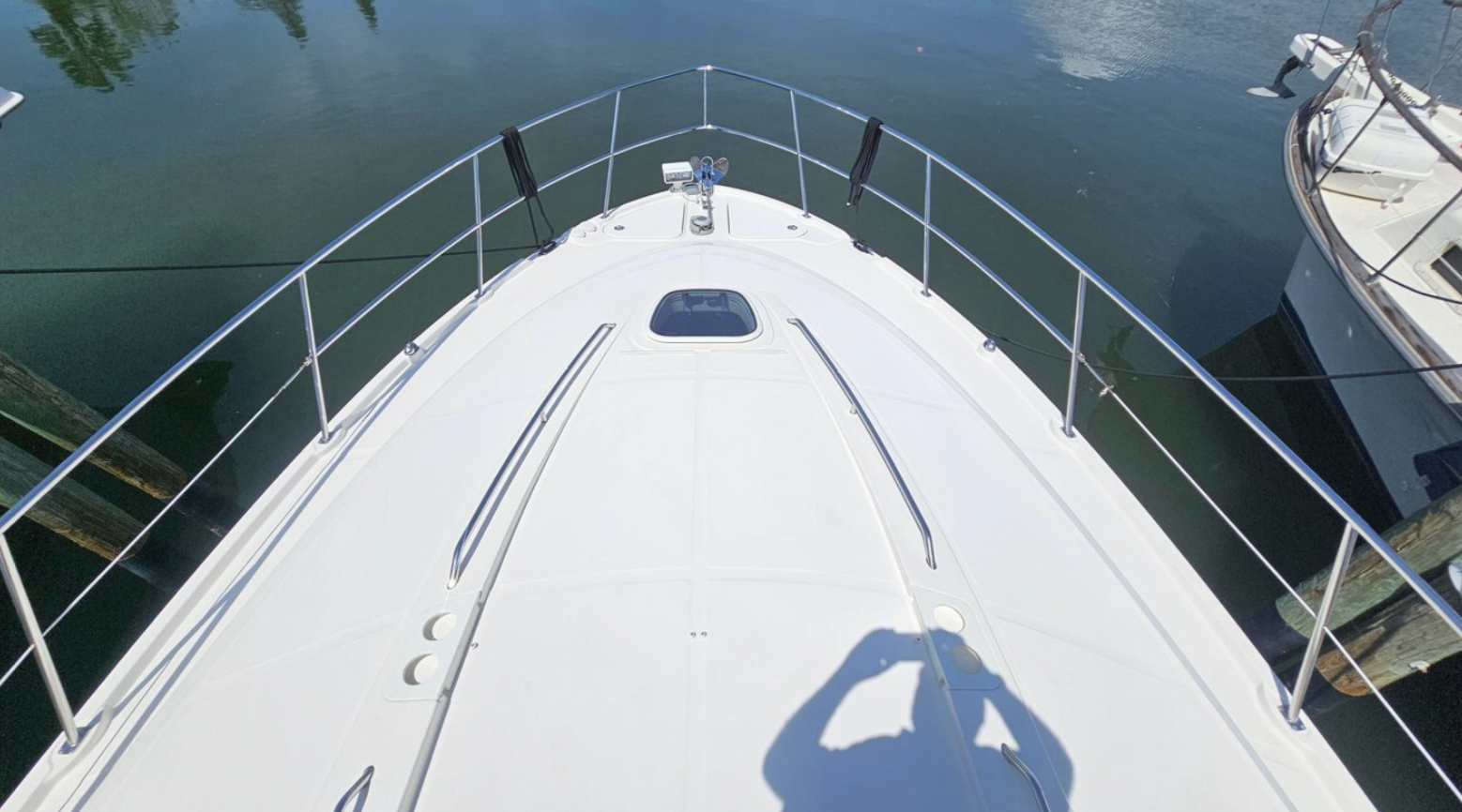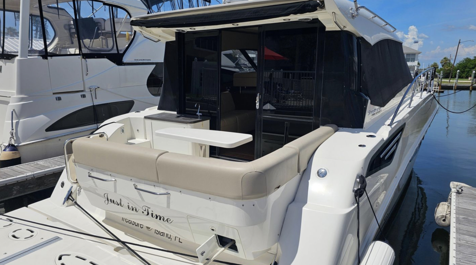 The 470 Sundancer provides ample space for relaxation and comfort. The electric windlass adds convenience to anchoring, allowing for effortless operation. This well cared for, used beauty, named “Just in Time,” is perfect for those seeking adventure and elegance on the open sea. Experience the ultimate in boating with this exceptional yacht.