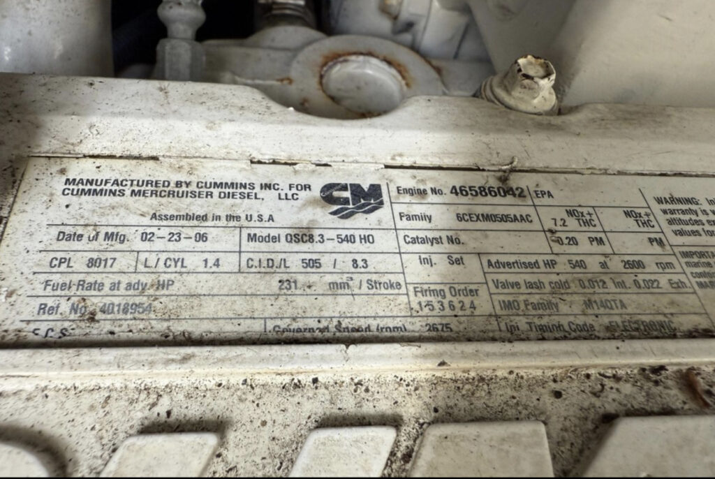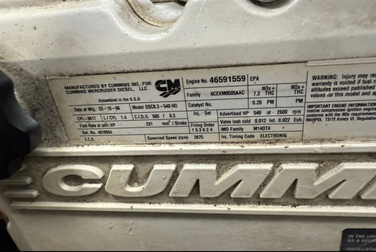 – 2 x Cummins x 540 hp (shafts) avec 1655 heures
