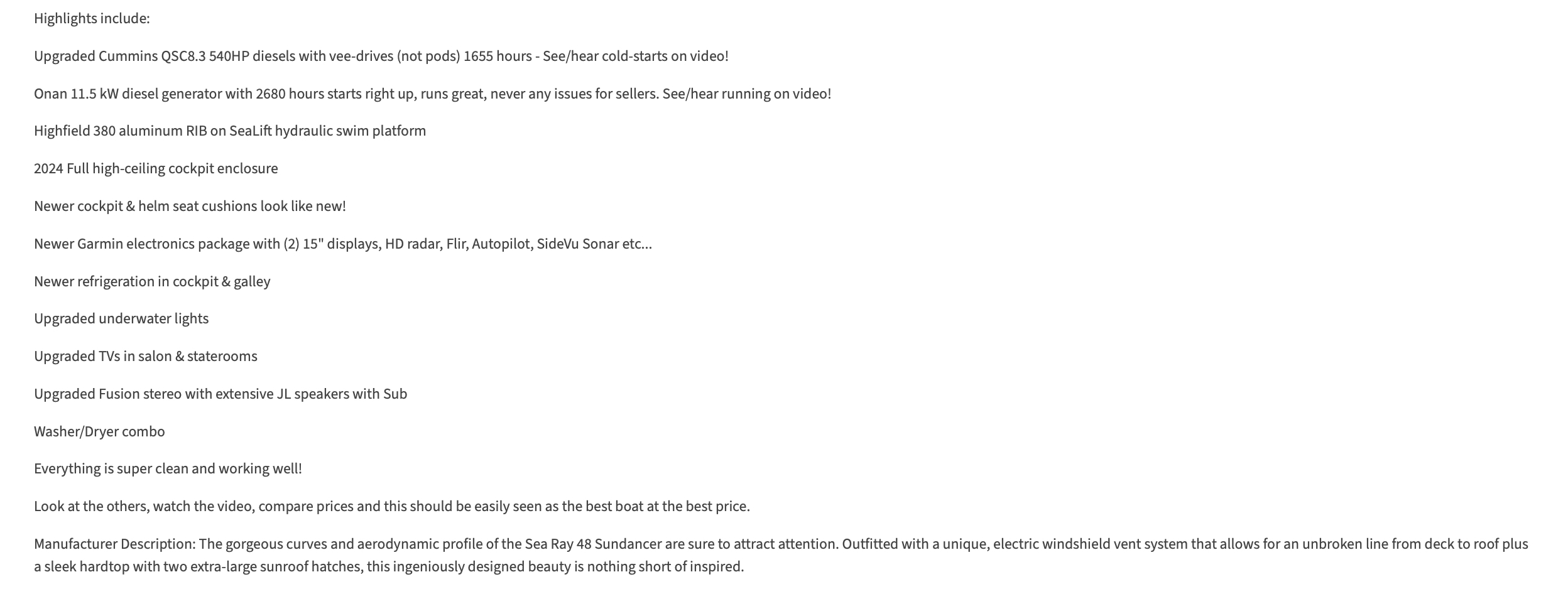 N.B. Voir l’onglet PIECES JOINTES pour les détails de ce Sea Ray 48 Sundancer