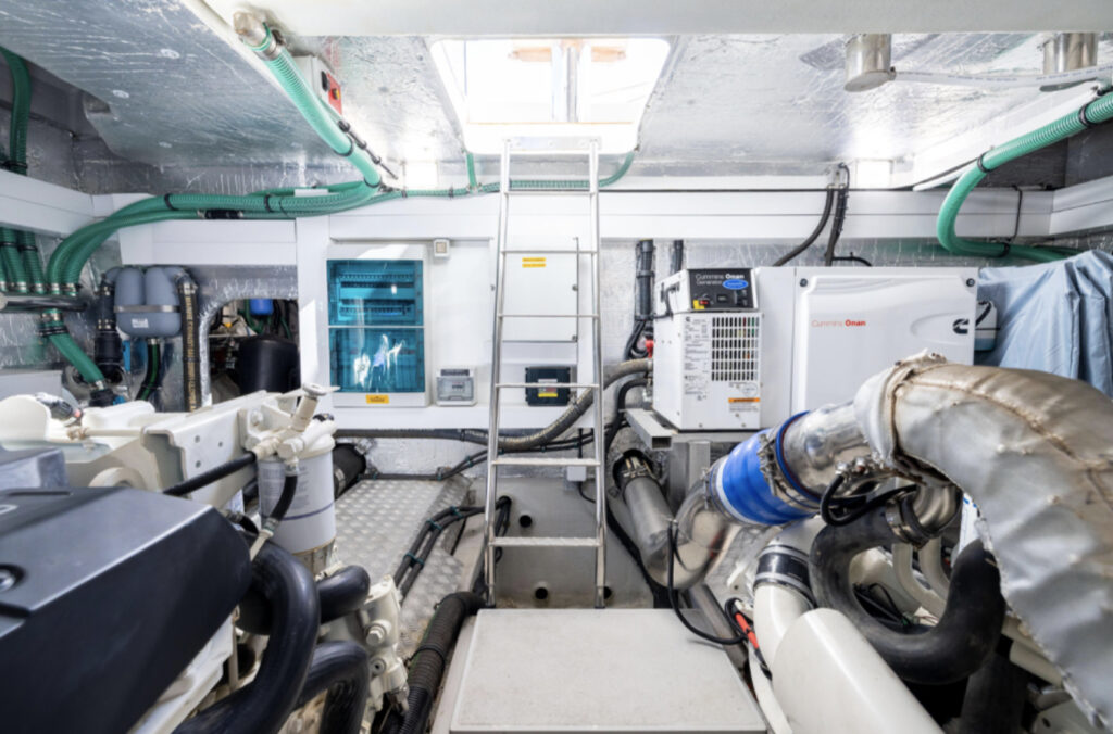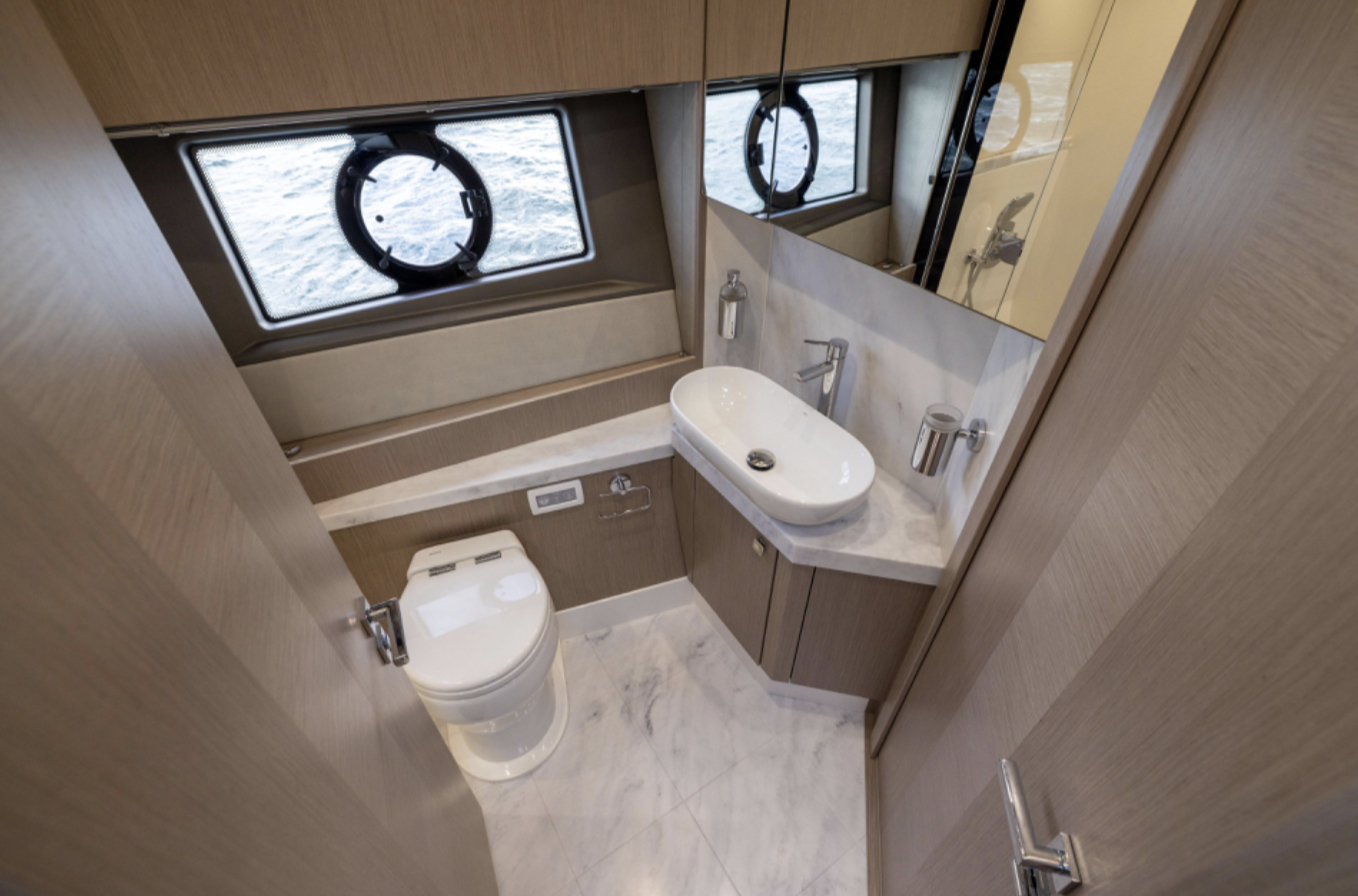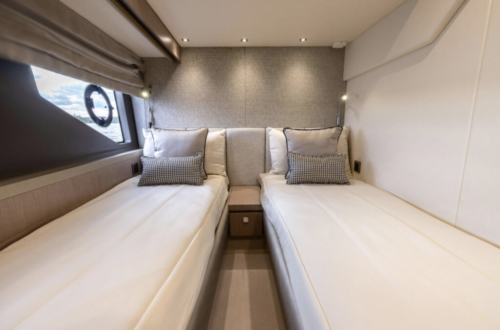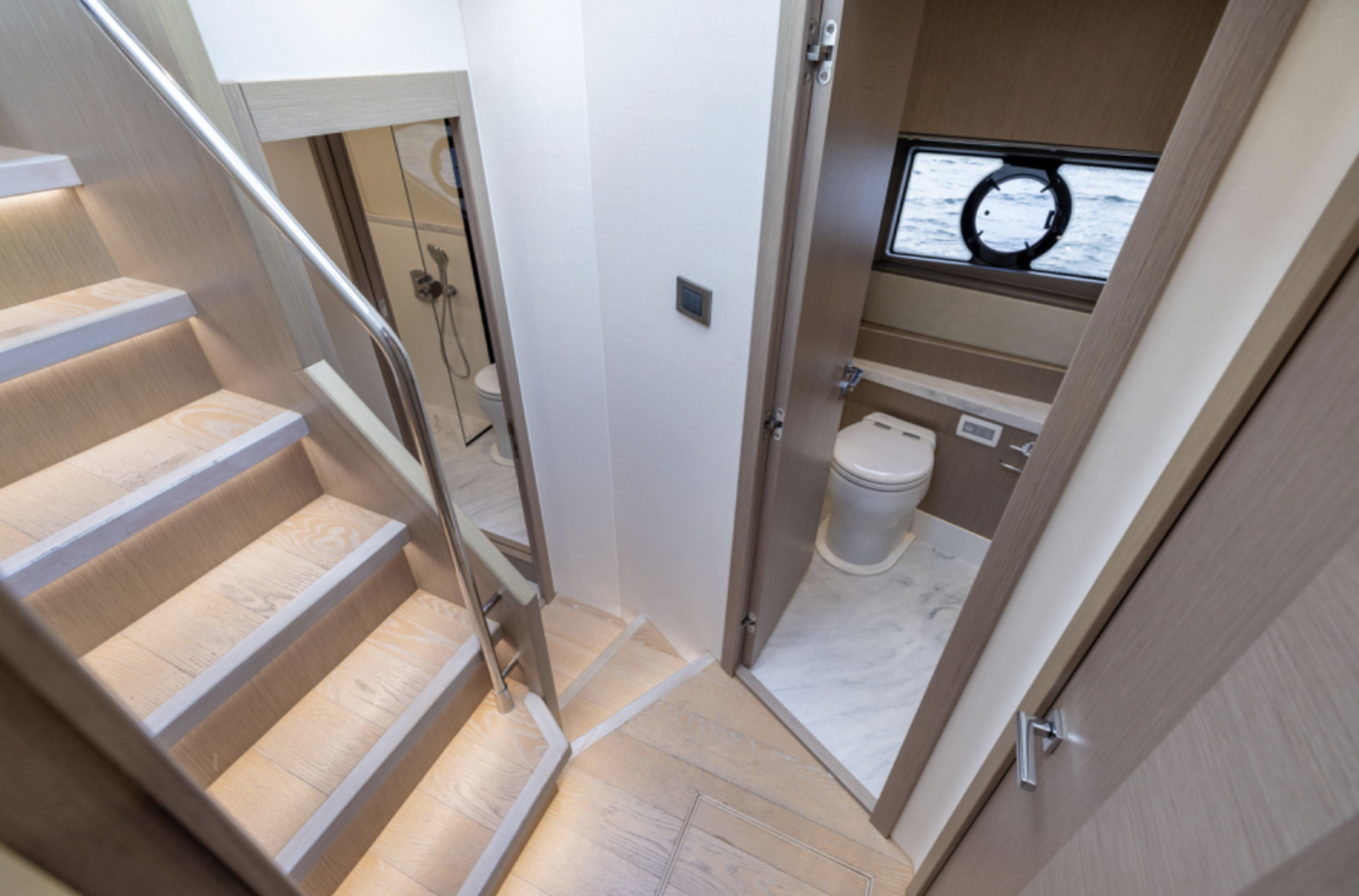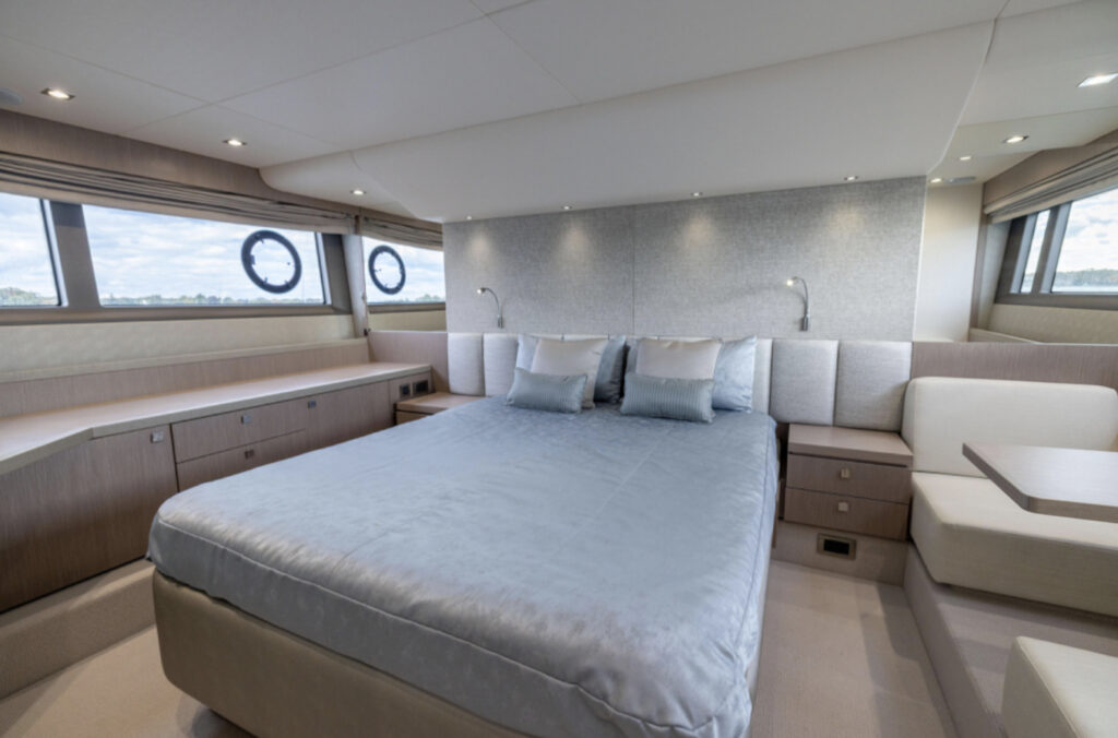 Powered by twin Volvo Penta IPS 950 engines (2 x 725PS), she delivers a smooth, efficient, and dynamic cruising experience. The Volvo Penta IPS DPS (Dynamic Positioning System) with Joystick Control, and Glass Cockpit system at both the main helm and flybridge provide cutting-edge navigation and control. Electronics include a Garmin GMR 624 xHD2 Open Array Radar and dual Garmin GMI 20 speed/depth instruments, while the upgraded VHF system with DSC function ensures reliable communication offshore.
