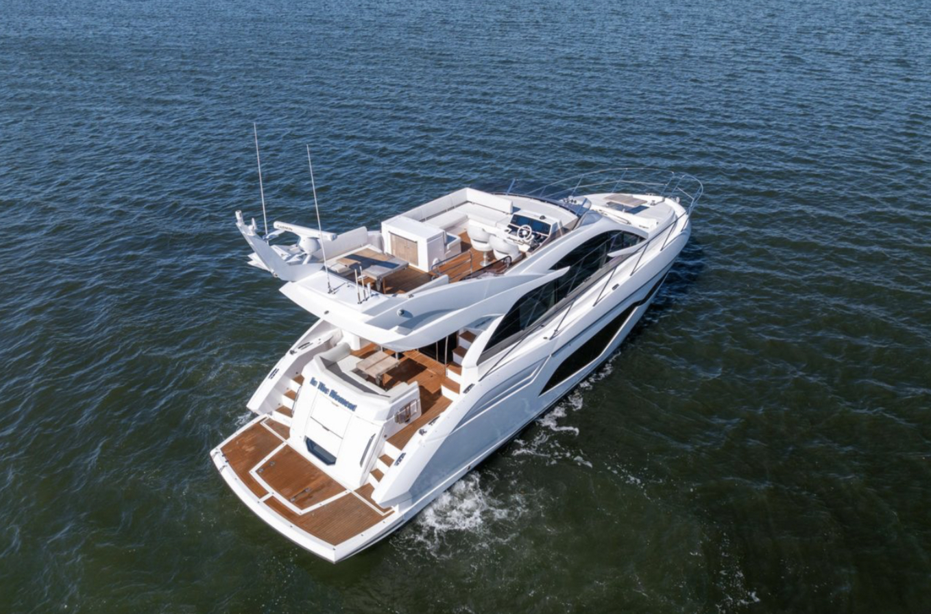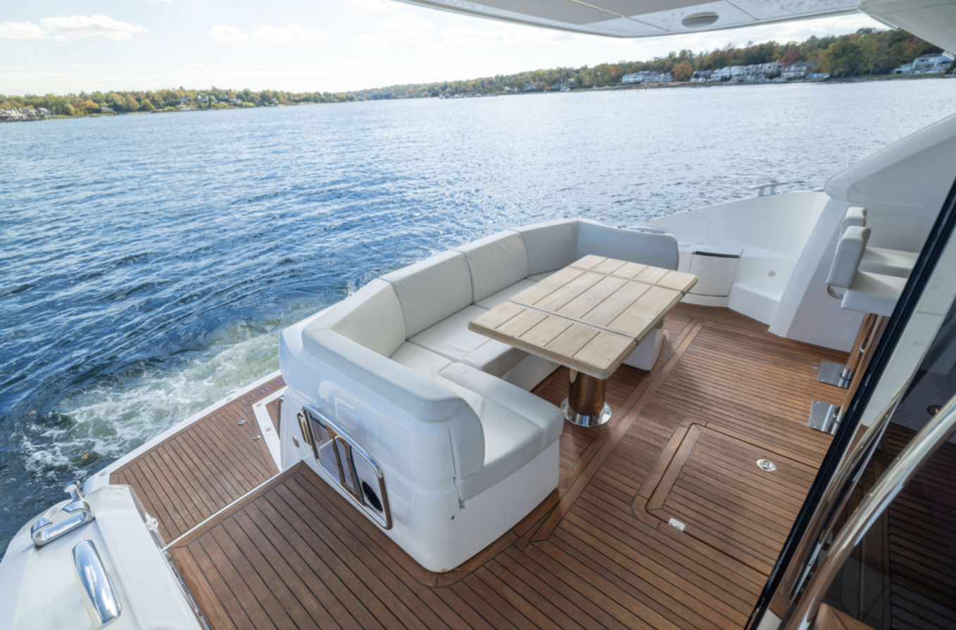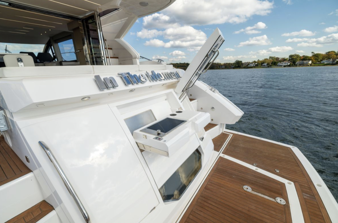 Whether cruising or at anchor, this Manhattan 52 offers a stress-free, luxurious experience with features such as air conditioning, a hydraulic swim platform, icemaker, and wine cooler—all designed to elevate your time on the water.