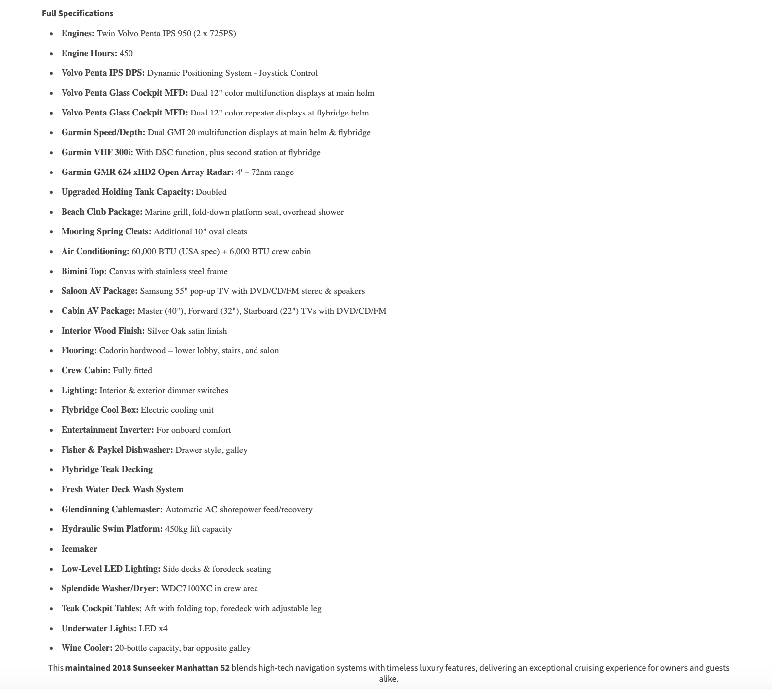 N.B. Voir l’onglet PIECES JOINTES pour tous les détails de ce Sunseeker Manhattan 52