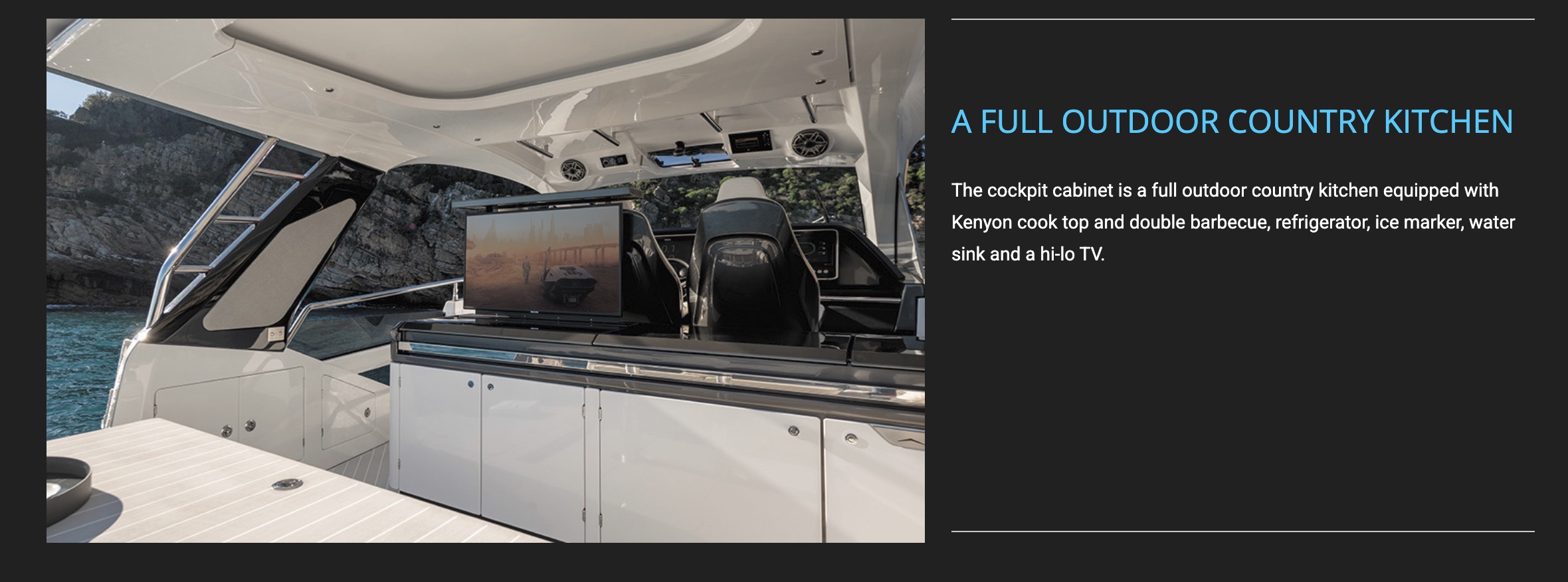 elevated with a wine cooler, cockpit BBQ, cooktop, and dual iceboxes,
