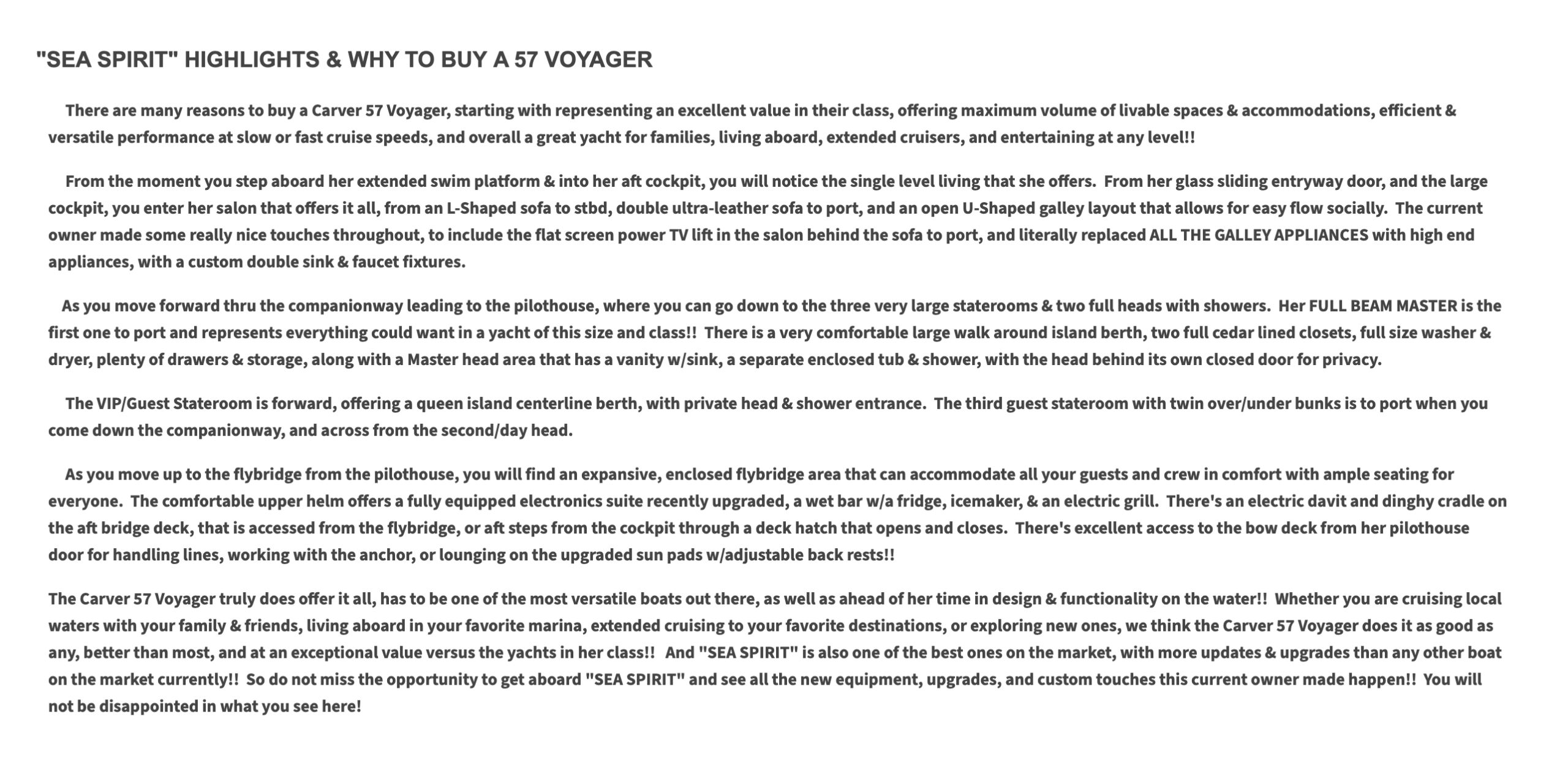 "SEA SPIRIT" IS A LOW HOUR, LIGHTLY USED, WELL EQUIPPED & MAINTAINED EXAMPLE OF THE POPULAR 57 VOYAGER PILOTHOUSE MOTOR YACHT BY CARVER.